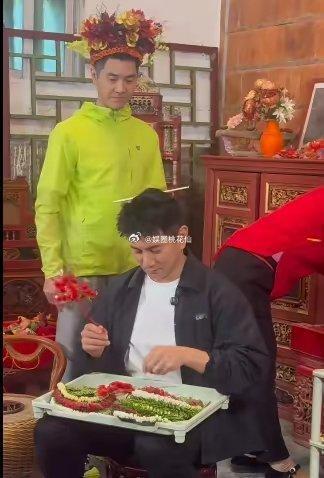 54岁吴奇隆现身泉州,体验簪花穿红色马面裙,大肚腩明显胖了好多