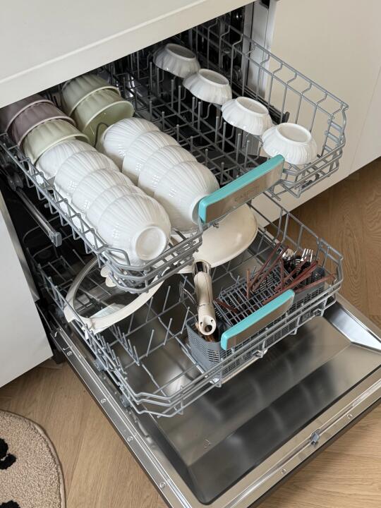 不过容量大是真的很好使,吃饭的锅碗筷勺一次性放进去洗的感觉确实有点不一样,第一次小成本买的洗碗机体验感确实不错