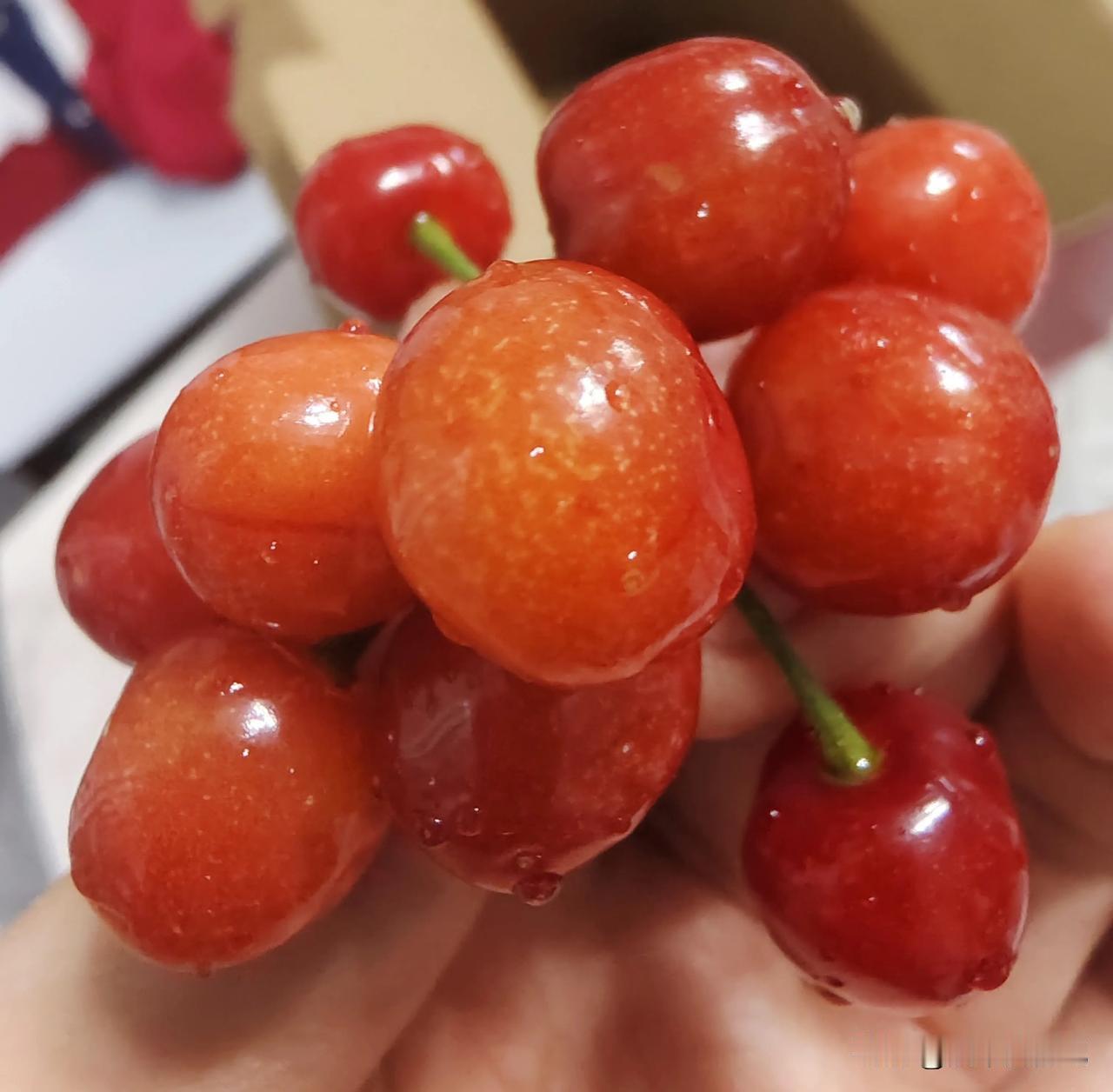 万能生活指南我兄弟他们一家去樱桃沟摘了樱桃,给我送了一箱,想着还不到五一,小樱桃会酸,没想到很甜,嗯,新鲜[赞]