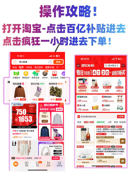 现在淘宝每天8点疯狂1小时百亿补贴,覆盖面面广,有3c数码也有家电!