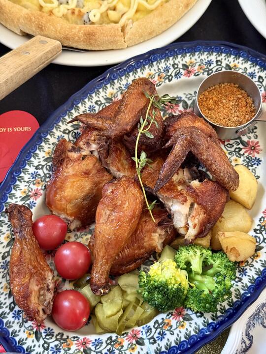 盘锦的夏天已经开始了花花brunch美到失语❗️ 被这小氛围感 拿捏的啦 随手一拍都能出片 🔥火焰瀑布芝士牛排 现场炙烤仪式感满满~超级炫酷 有被惊艳到🤩 蜜汁烤鸡🐔 烤的火侯刚刚好 小鸡翅鸡腿是我的最爱 搭配土豆酸黄瓜🥒 清新解腻 🍀花园芝士蛋糕 抹茶口味的 颜值在线 过生日 约会 姐妹聚餐的宝宝们 来着准没错