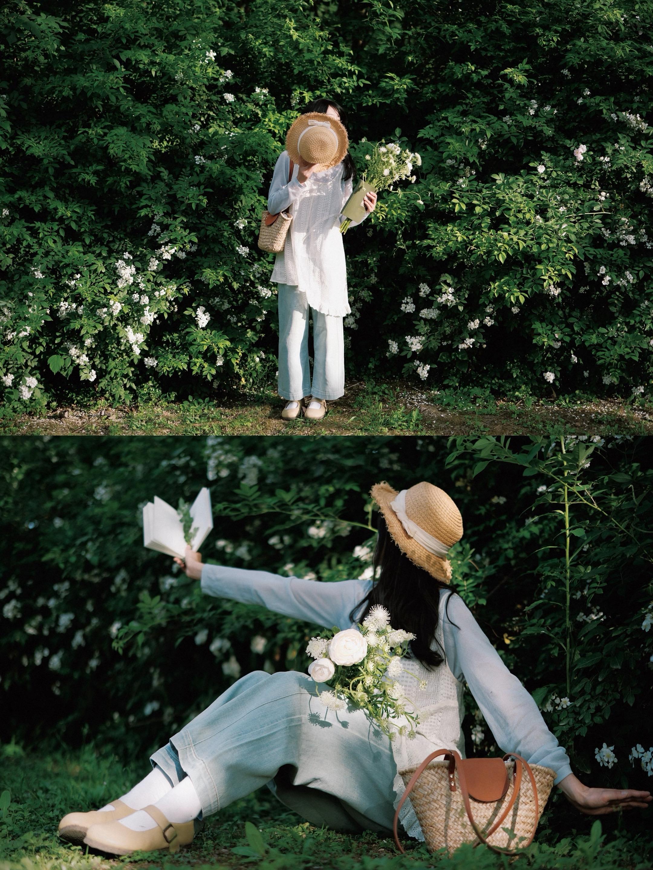 春夏赏花拍出文艺电影感|🎬🌿胶片感。最近蔷薇花墙很美呀🌸 趁着好天气赶紧冲 结果老地方的花花今年没有开 遇到白色的小野花 在下午4.5点的阳光加持下 也能轻松拍出文艺电影感🎬🍃