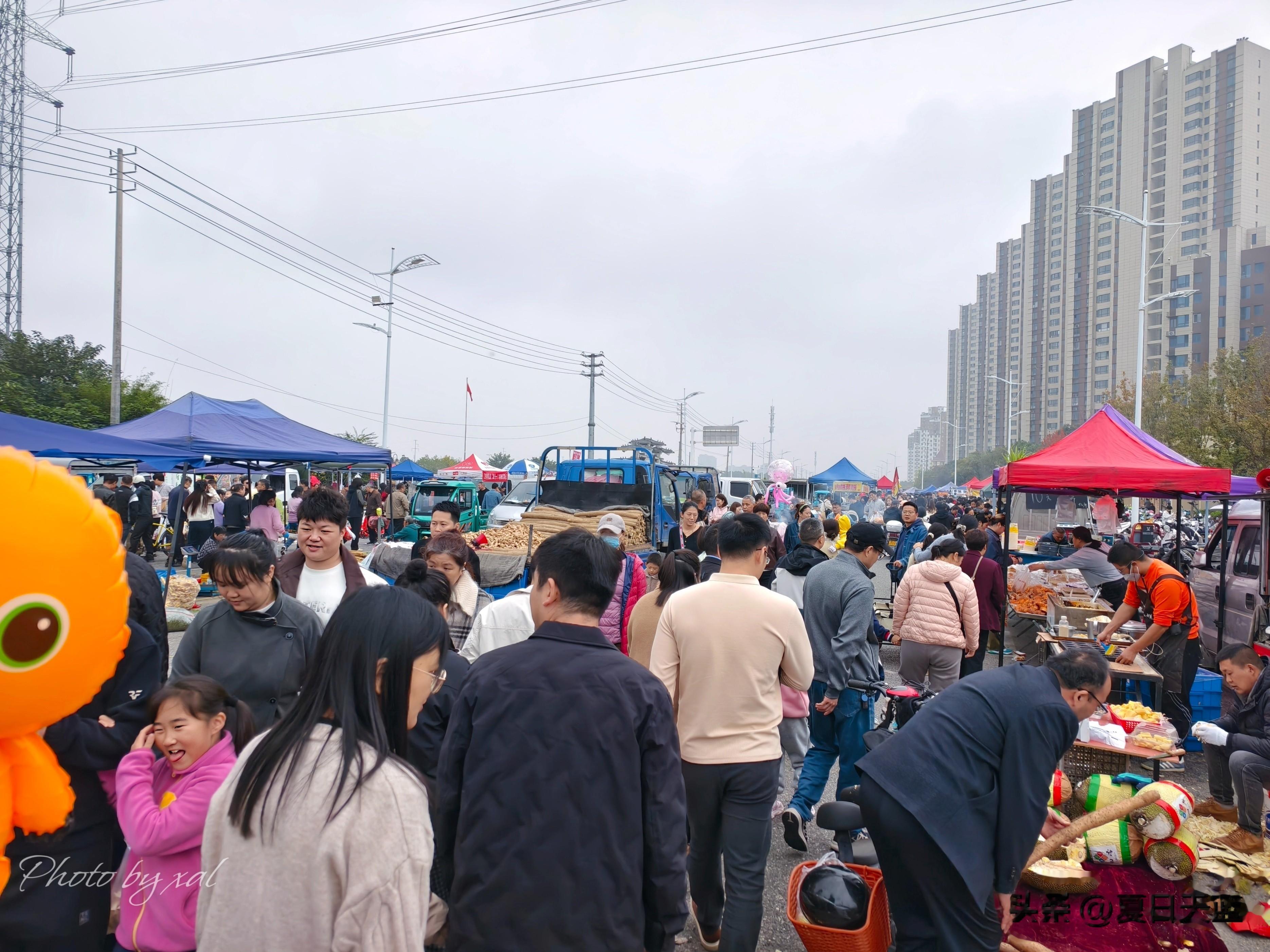 渐渐走近,音乐声、喇叭声、叫卖声、讨价还价声等各种声响此起彼伏,热闹非凡。