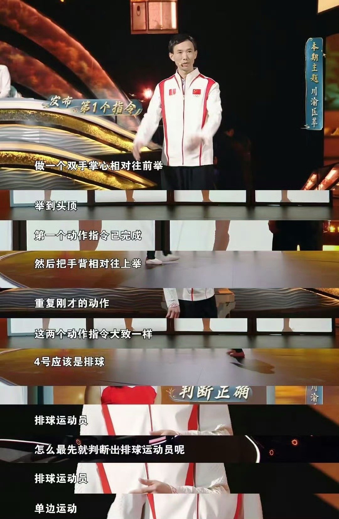 中医仅靠几个动作就能判断职业《中国中医药大会》上,中医专家仅凭几个简单动作,如举手、单腿半蹲,观察姿态步态,就能精准判断运动员职业,从运动损伤找线索,中医诊断智慧太牛了!👍