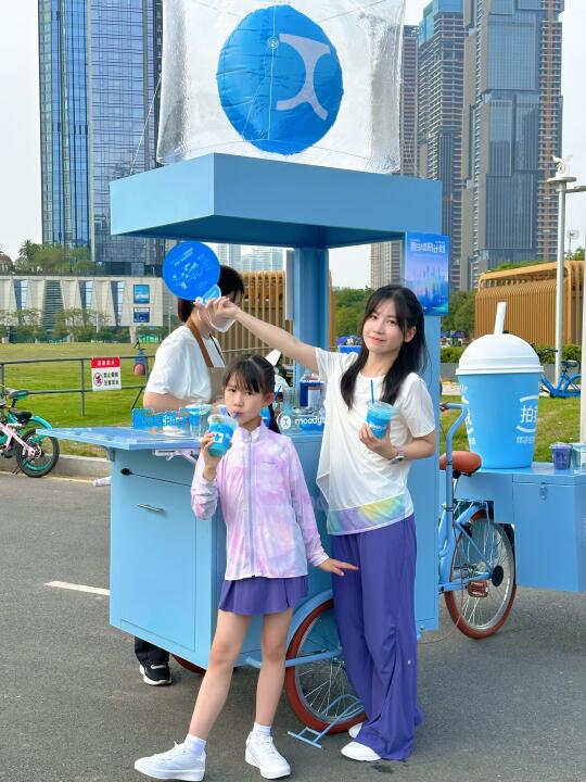 🌟天热越来越热🥵,周末带孩子去演艺公园想吹海风降温,没想到碰上凉感巡回小车免费请大小朋友喝冰饮,跟着小车解锁了一杯「永不结束的冰夏」瞬间解暑,凉感续航upup!🥶