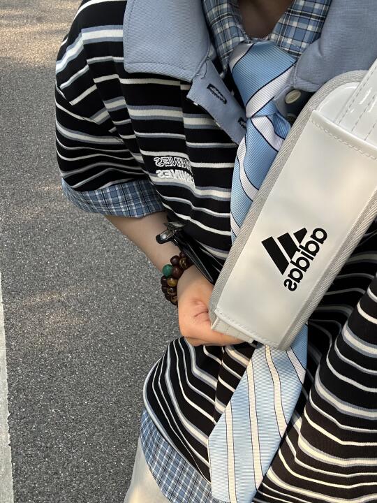 清清爽爽滴 姐整了件条纹➕格子的叠叠乐 小领带一整 介么帅来抄作业