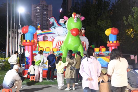 除了吃的,还有好多好玩的,充气城堡、蹦蹦床、套圈、扎气球、手工diy,琳琅满目。我还淘到了一个超有个性的小饰品,独一无二