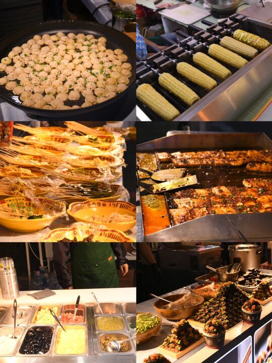 这里🈶很多美食小吃,烤生蚝、臭豆腐、酸辣粉、榴莲芝士烤冷面、羊肉串、卤煮、清补凉、钵钵鸡、冰淇淋、奶茶🧋……各种小吃的香味混合在一起,每一种都想尝一口😋