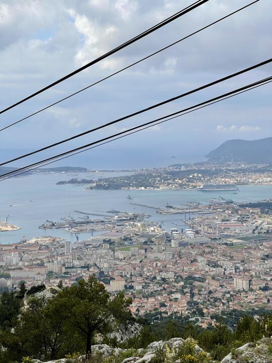 在Toulon有两件事可以做,上山和下海。上山指的是Mont Faron, 🚠可以坐缆车俯瞰全城。如果你是一个徒步爱好者,也可以在缆车登顶后继续徒步。在App Réseau Mistral上可以直接买缆车日票,全城公共交通通用。