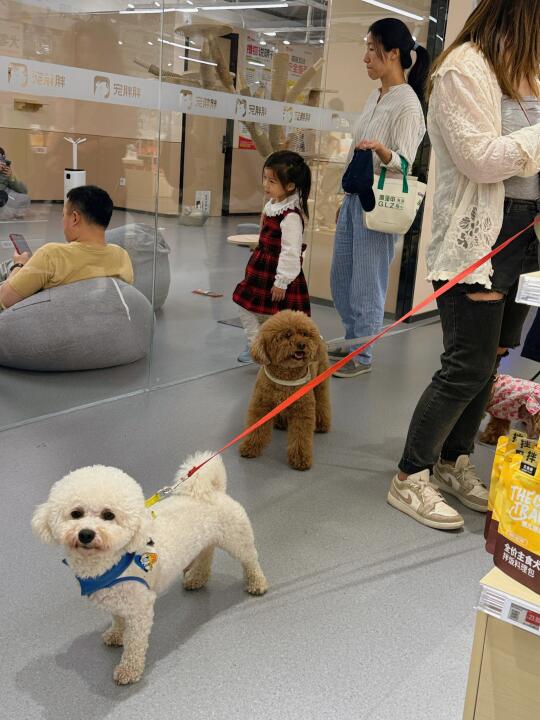 店里可以看到很多带着宠物的主人们,不但有24小时在线问诊,还有洗护区。同时寄养区环境舒适,24小时监控,出门再也不用担心毛孩子没人照顾啦。