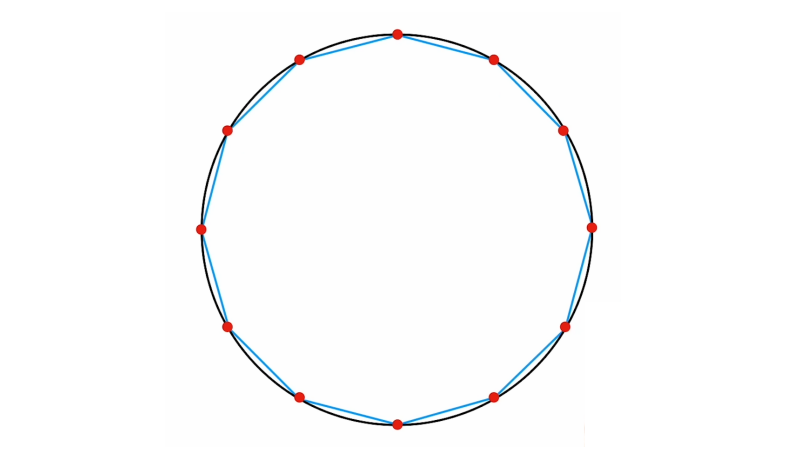 当然,大多数人都知道,除了切角,阿基米德还像这样精确地逼近圆来估计圆周率,