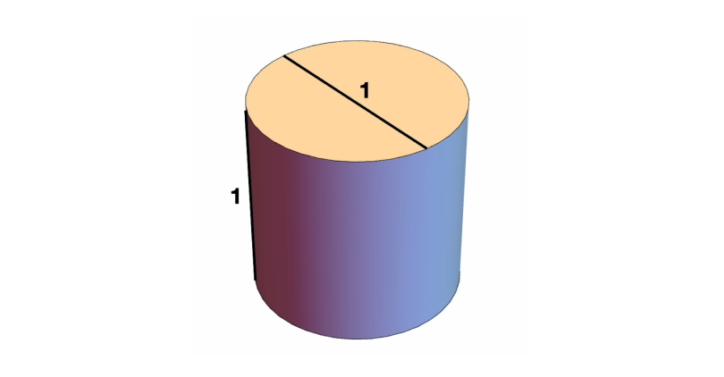 为了保持圆周率等于4的谜题,让我们近似一个非常特殊的圆柱,一个表面积等于圆周率的圆柱。