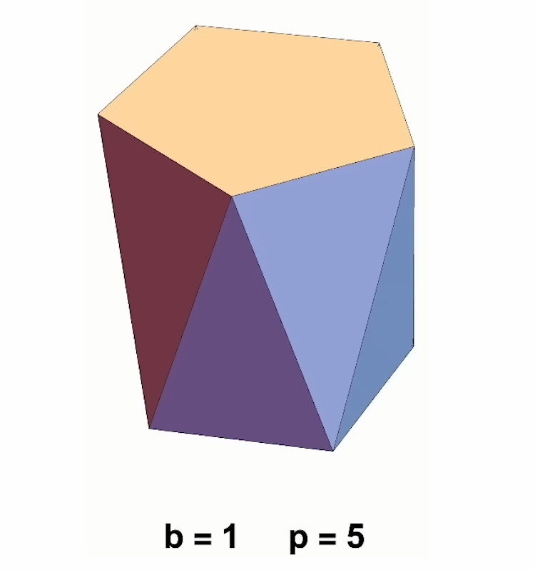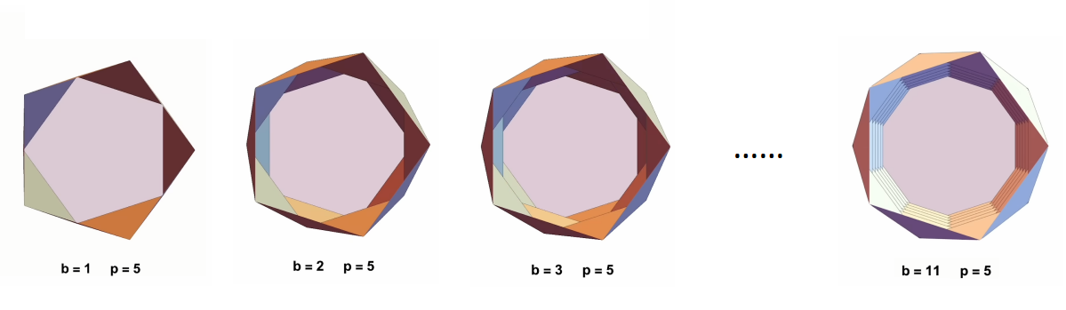 为什么我们知道有这样一个特殊的带数呢?因为如果将点数固定在4,并增加带数,面积就会爆炸性地增长到无穷大,所以在某个时刻,这个面积必须大于4。这个特殊的b恰好是7。所以,带数为7,点数为4的灯笼是第一个灯笼。