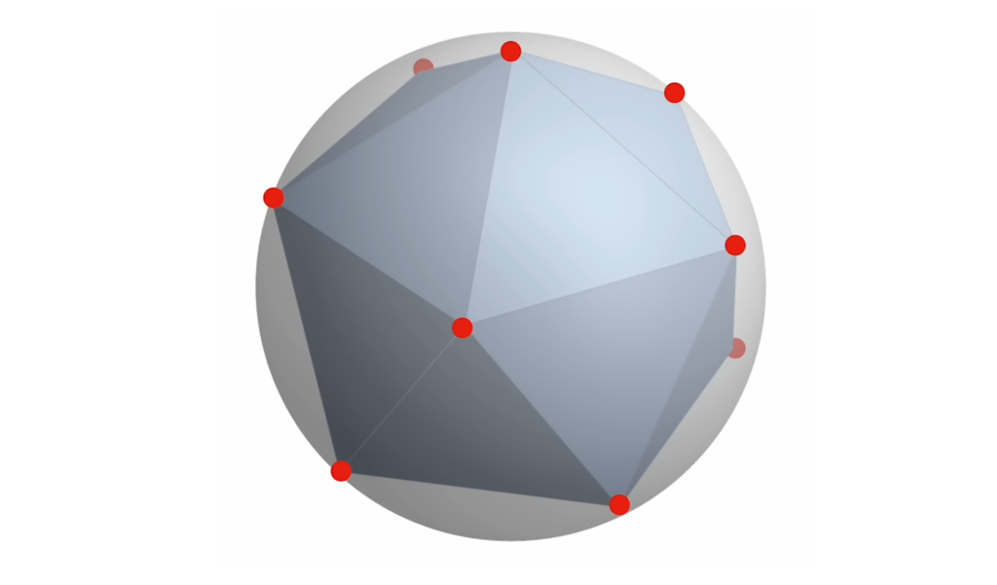 这是对球体相当不错的近似了,而且这个三角形近似的表面积很容易测量,肯定非常接近球体的表面积。
