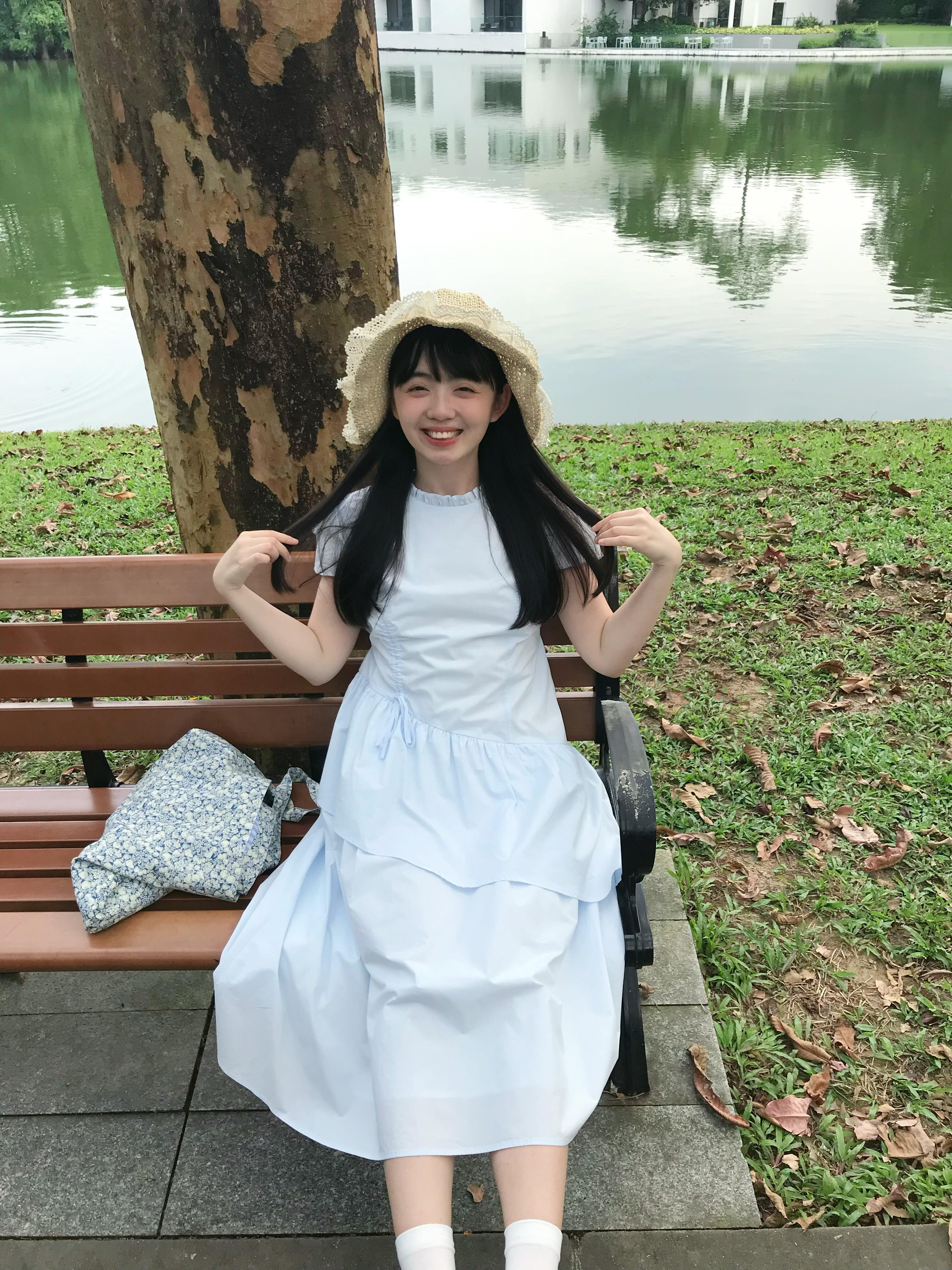 夏日清爽甜美设计感蓝色不规则蛋糕裙吼吼看