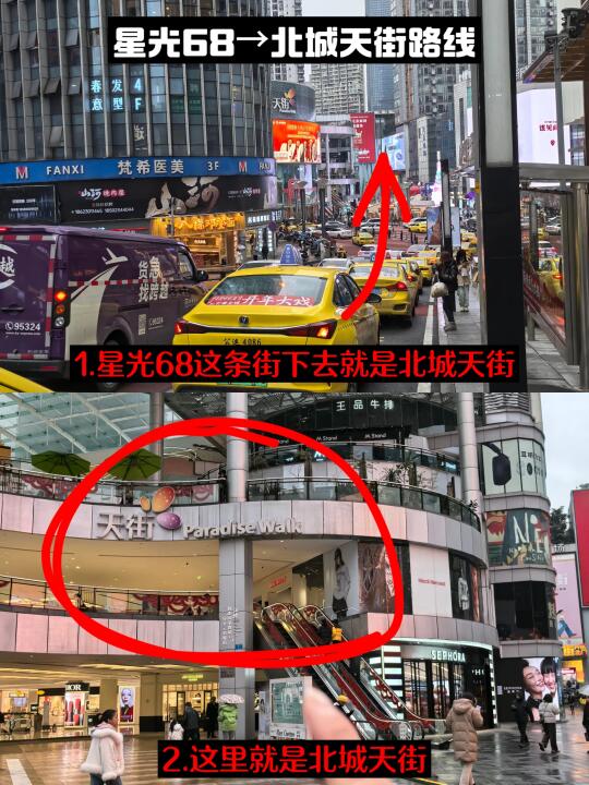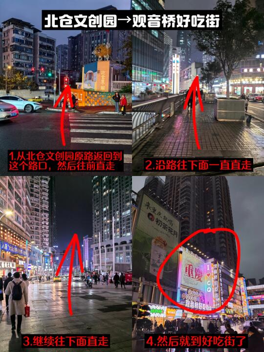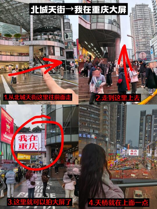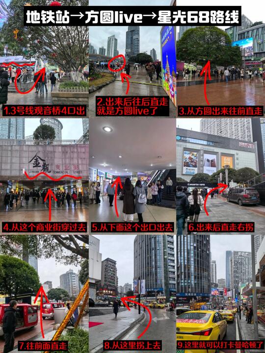 观音桥好玩的地方也蛮多的,也有很多可以打卡的地方,给大家总结了一下打卡路线。 ✅观音桥3号线地铁站→方圆live→星光68广场→北城天街→塔坪→北仓文创园→好吃街 这个路线很顺路!