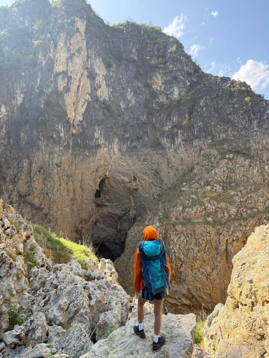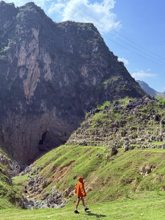 五一自驾12小时到广西崇左 天气太热导致中暑上吐下泻 但是实在不想错过广西“塞尔达” 于是忍着疲惫身躯坚持去徒步 虽然最后只走到三分之一 但是又如何呢 过程才是体验 人生已经没有遗憾 户外清单加➕1 把犹豫踩进喀斯特岩层的褶皱 这里没有精致的玻璃栈道 只有垂直落差的岩壁 和地心深处涌动的风 当我摸着岩壁石头向下攀爬时 汗水和心跳声突然变得清晰—— 原来走出困局的第一步 是承认自己害怕坠落 像触摸大地的骨骼 那些以为过不去的坎 不过是人生岩层里一段需要匍匐的路