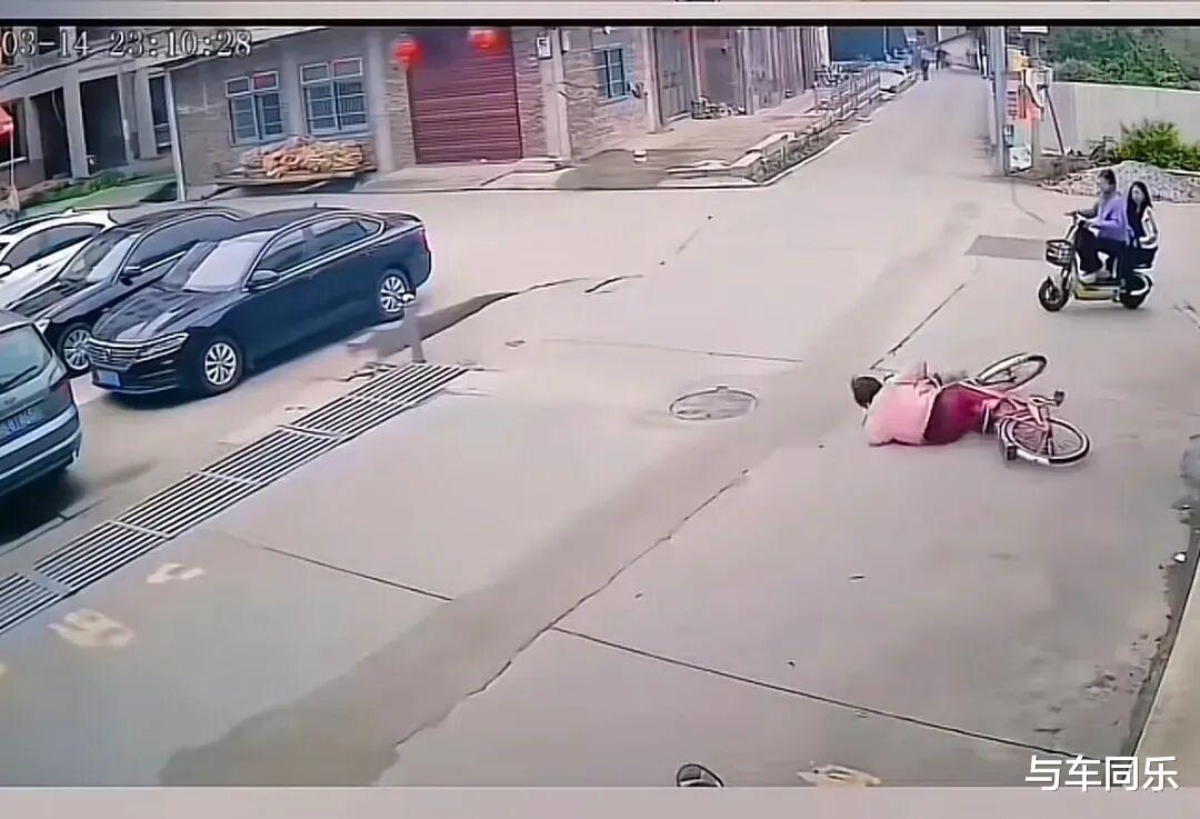 现在有人公开了事故当时监控视频,能看大妈避让白色轿车后,单车车头已经朝左,在即将倒地时,两女生才出现在监控镜头内。而且女生骑的电动车车速比汽车慢很多,视频目测双方距离2米左右。