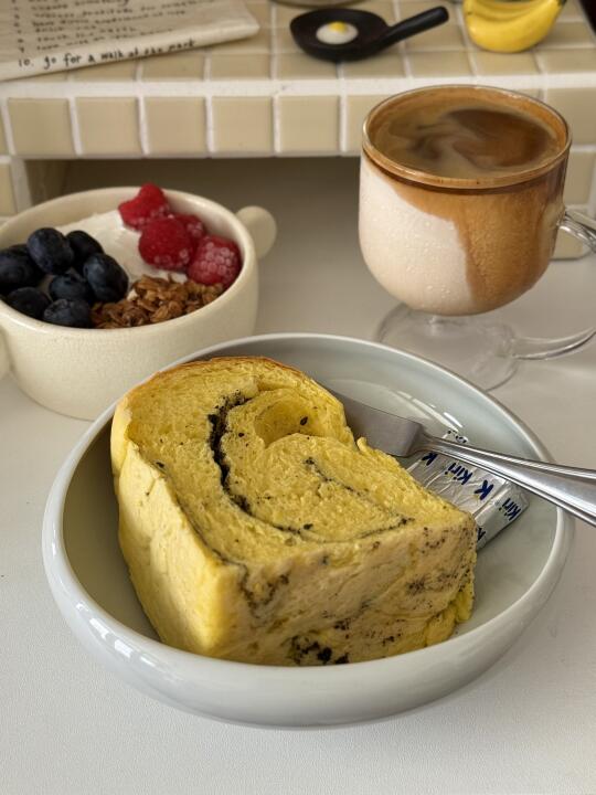 今日早餐✨南瓜黑芝麻吐司&酸奶碗&dirty☕️