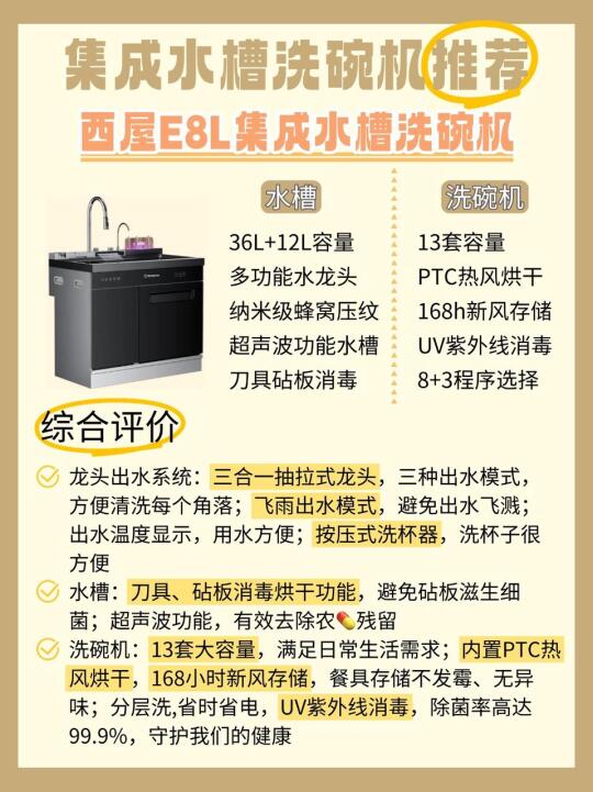 ✅西屋E8L集成水槽洗碗机