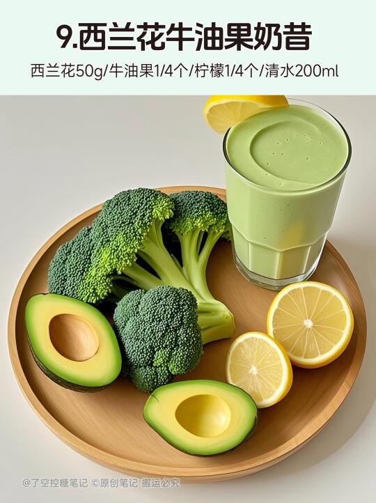 材料:西兰花50g+ 牛油果1/4个+ 柠檬1/4个+ 清水200ml