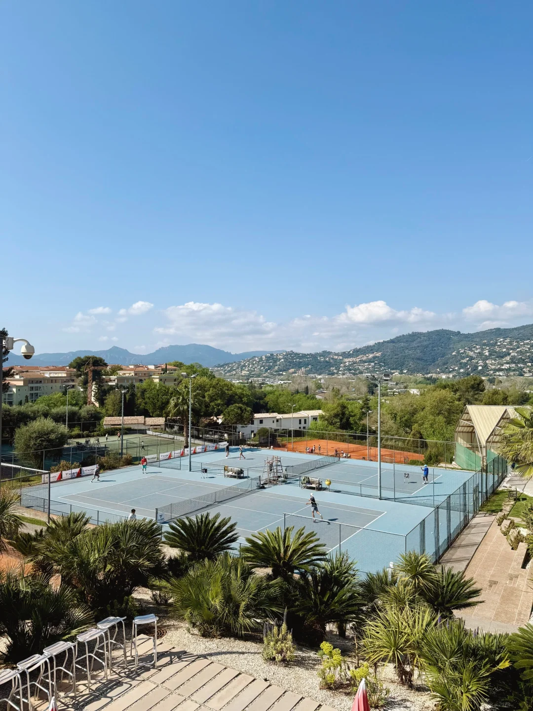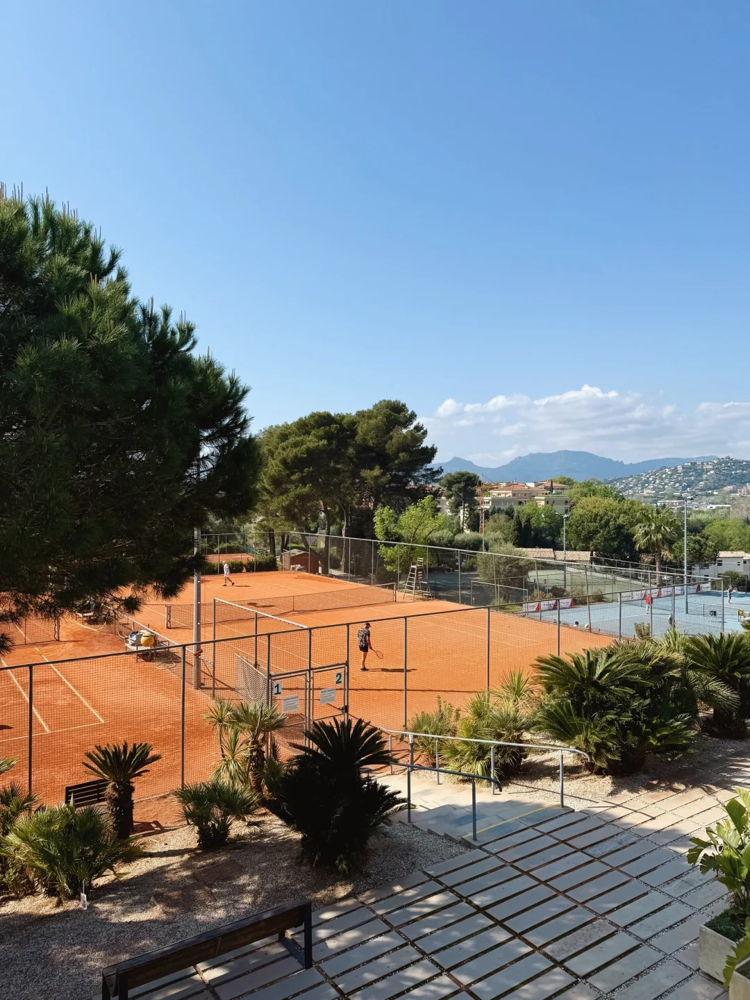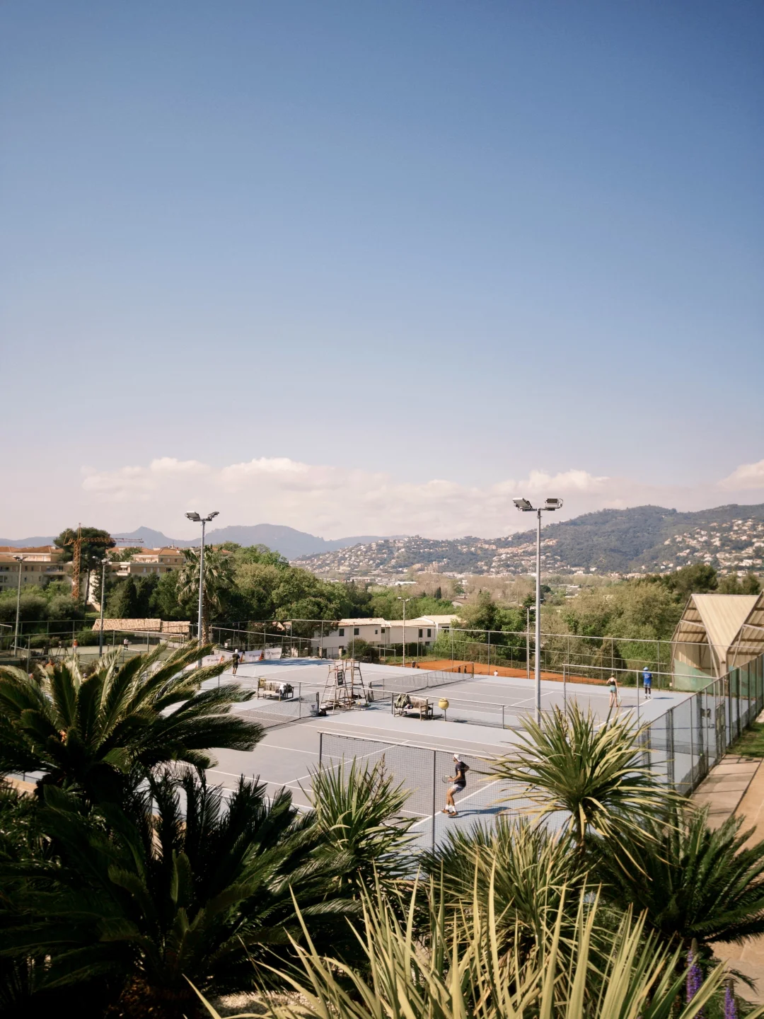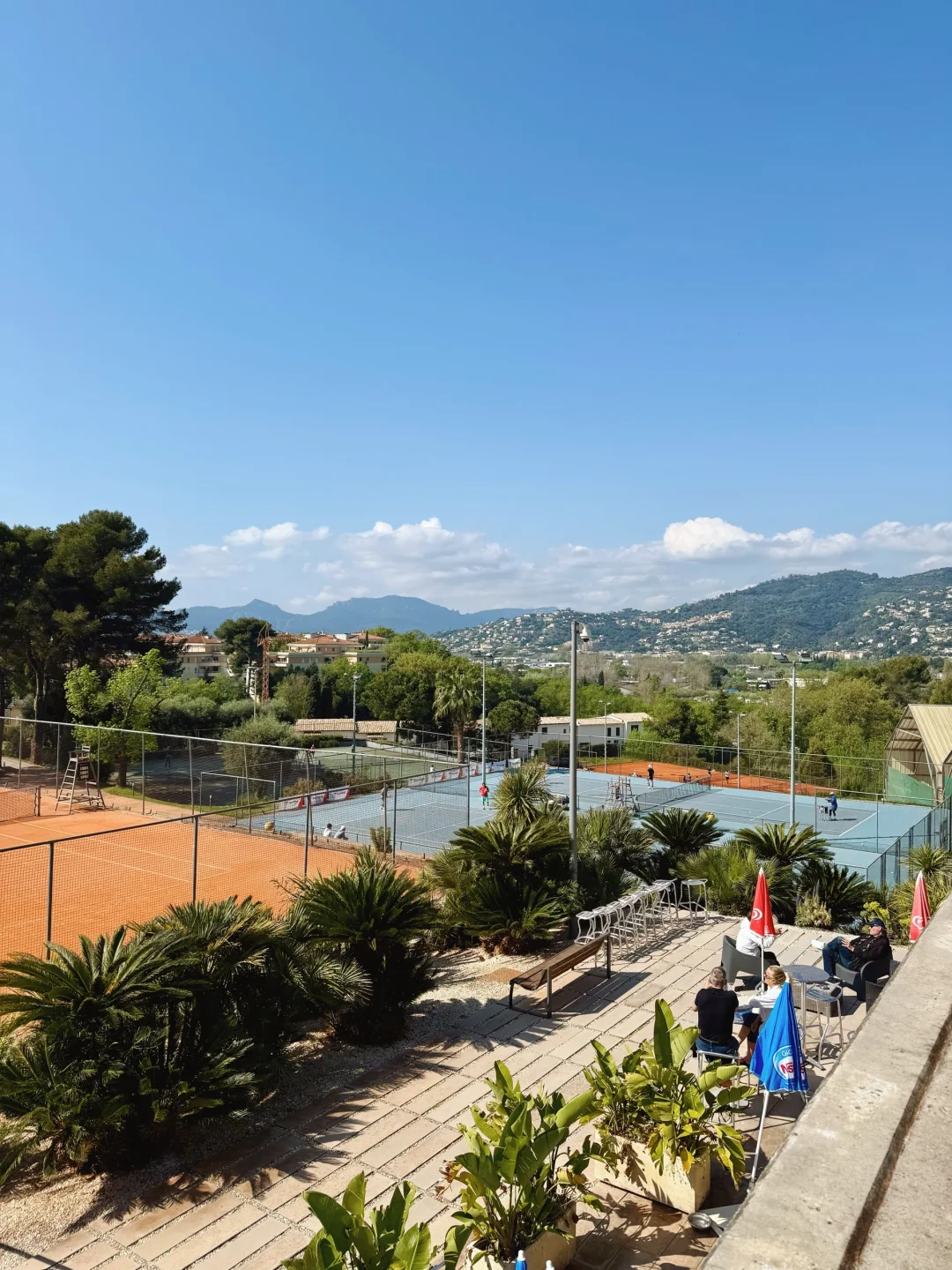 喜欢上网球之后自驾旅行都会带一整套网球装备在车里,手痒时地图搜一下网球场就可以直接开打。今天给大家推荐一个在戛纳,依山傍水景色绝佳的美丽网球场~