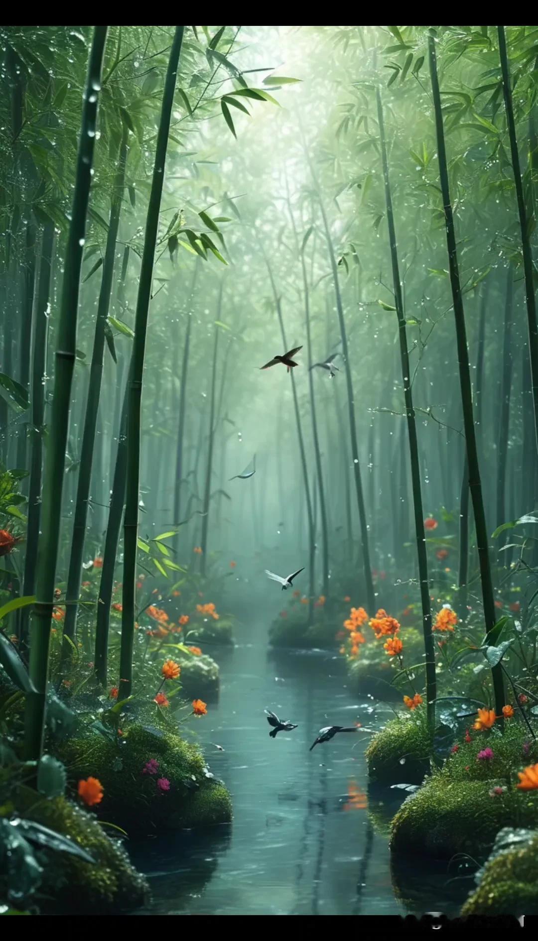 上联:香荷塘里锦鳞戏, 下联:修竹林中幽鸟闲。