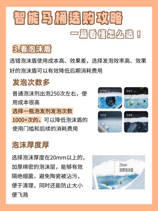🌟泡沫盾3.0技术,泡沫又厚又绵密,可以有效防臭、防飞溅、杀细菌,还便于清理;总重要的是它可使用次数更多,使用成本更低