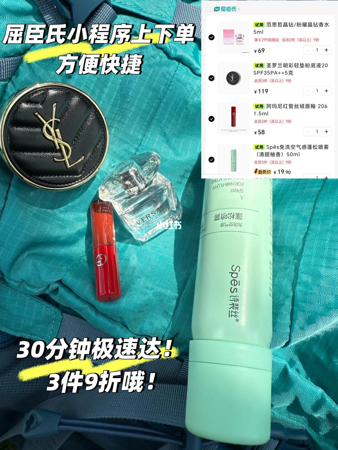 暴汗脱妆的我马上在🌷屈臣氏小程序救急,他家现在有超多大牌中小样可以买彩妆、护肤、个护种类齐全,现在还有3件9折的优惠。在休息区吃个雪糕,补充能量期间,30分钟我的补妆搭子就到了,搞完又可以奔赴下一个行程啦