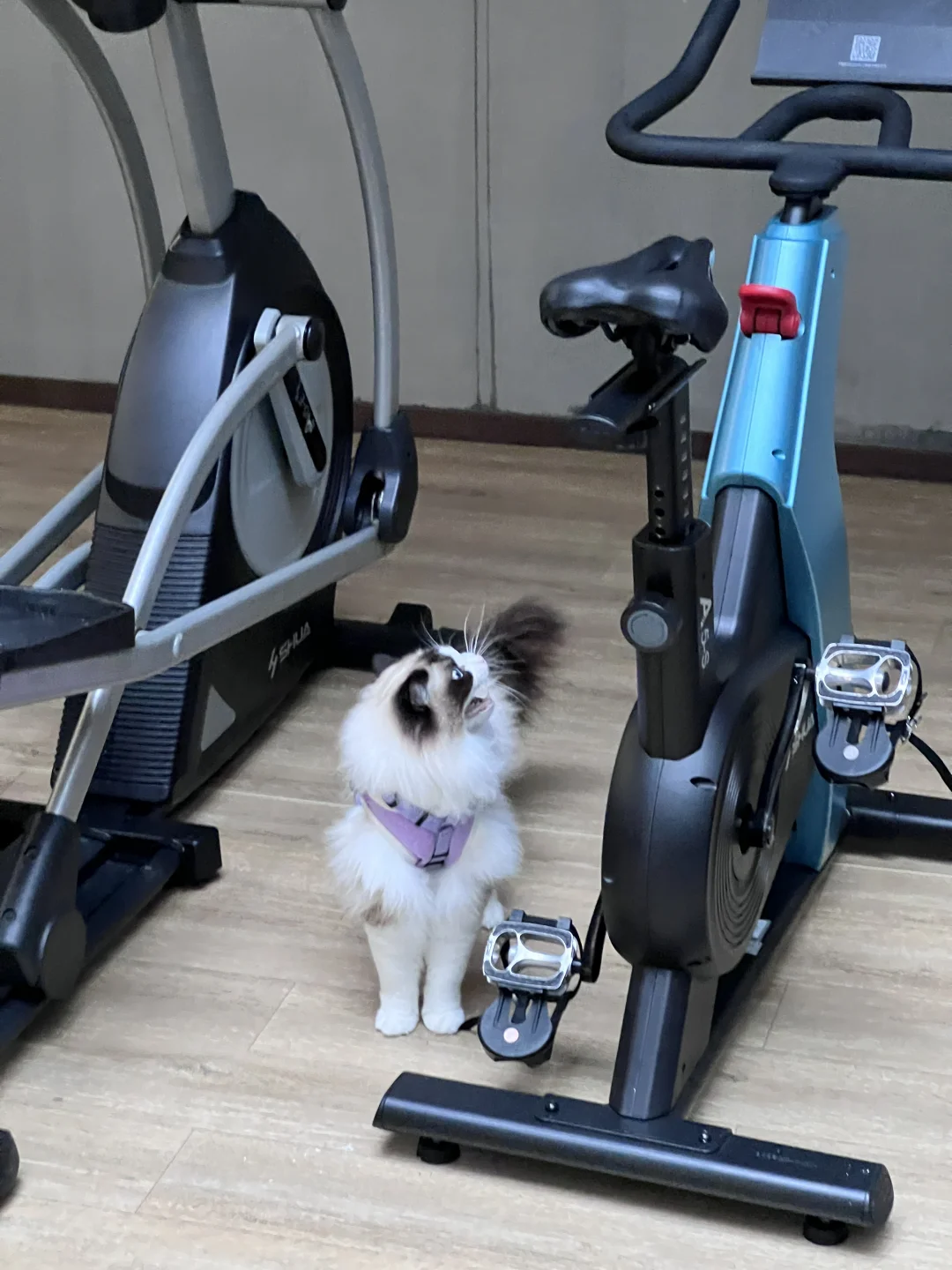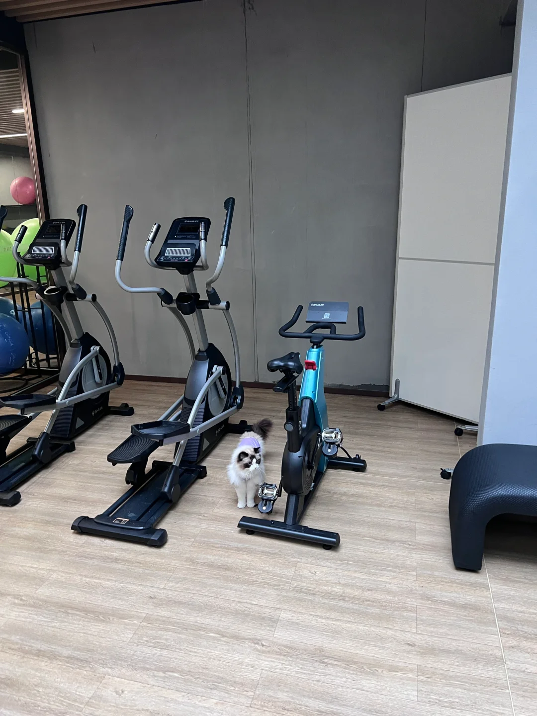 前两天都去了公园跑 今天下雨就来了楼下健身房 寿司可以陪我啦! 但是可能太久没带他来健身房了 有点小不安一直叫个不停[笑哭R] 来得早相当于包场了哈哈 坚持锻炼💪🏻
