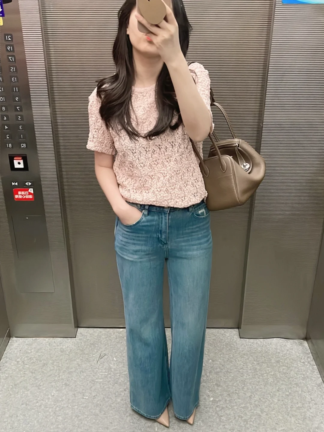 其实上班大部分时间都是急急忙忙的出门, 针织上衣➕喇叭裤的是我经常穿的类型, 材质版型都在线,越简单的款也会很出彩~
