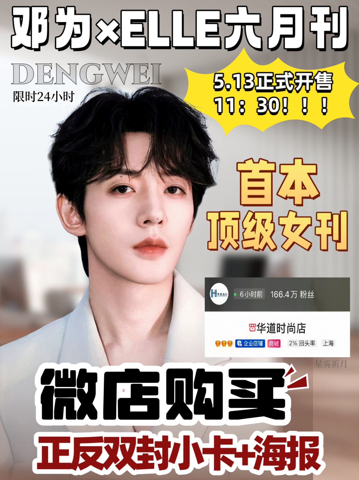 花粉选的二番生梦里啥都有,只知道邓为新剧《风月不相关》即将开机!期待一番大男主殷戈止!还有邓为首本ELLE五大杂志将在5.13日11:30分开售!欢迎大家都来支持哈![太开心][太开心][太开心]