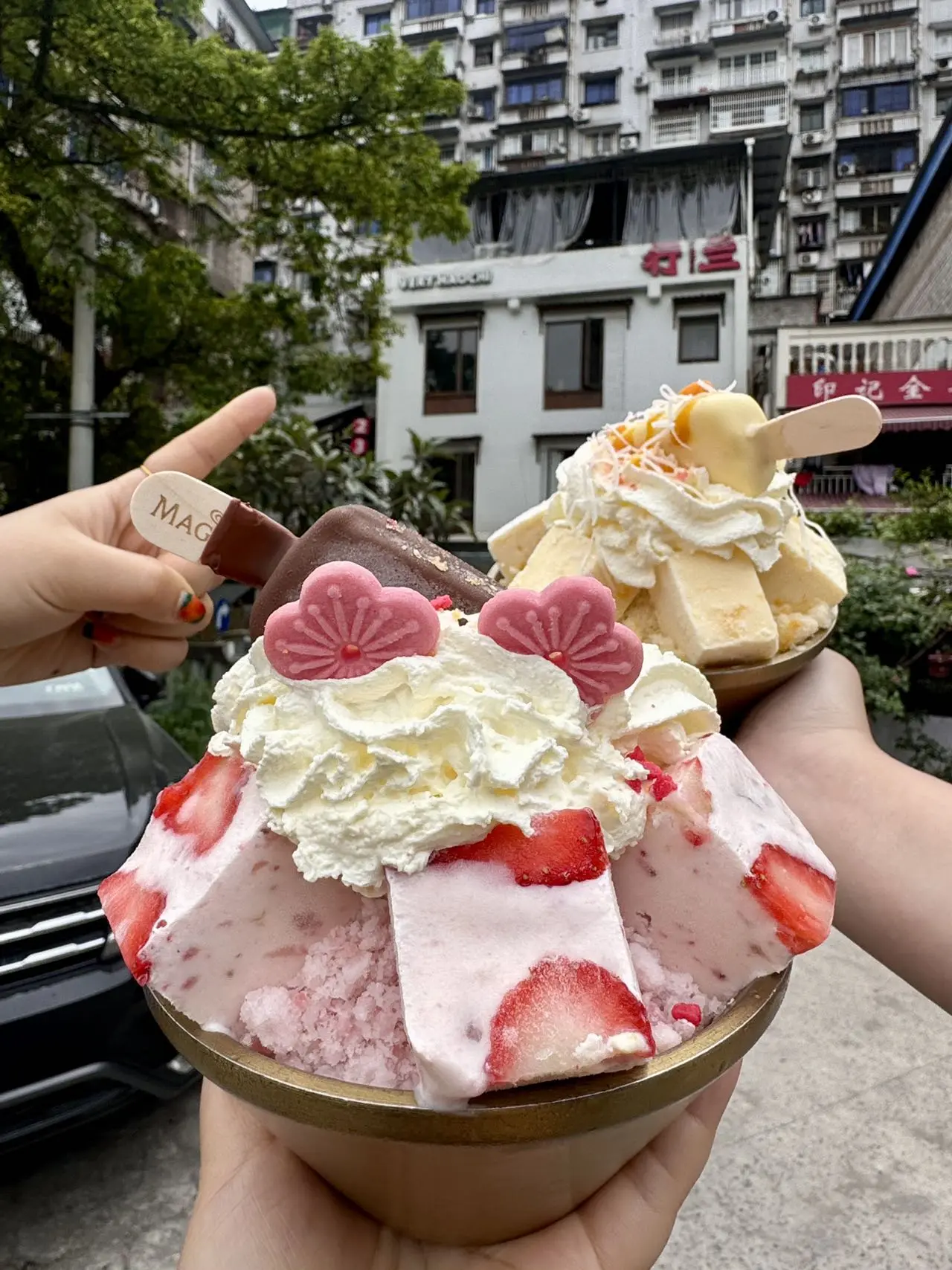 吃辣了来口店里自制的酸奶冰,不光颜值好看,味道也很赞,好解辣哟!