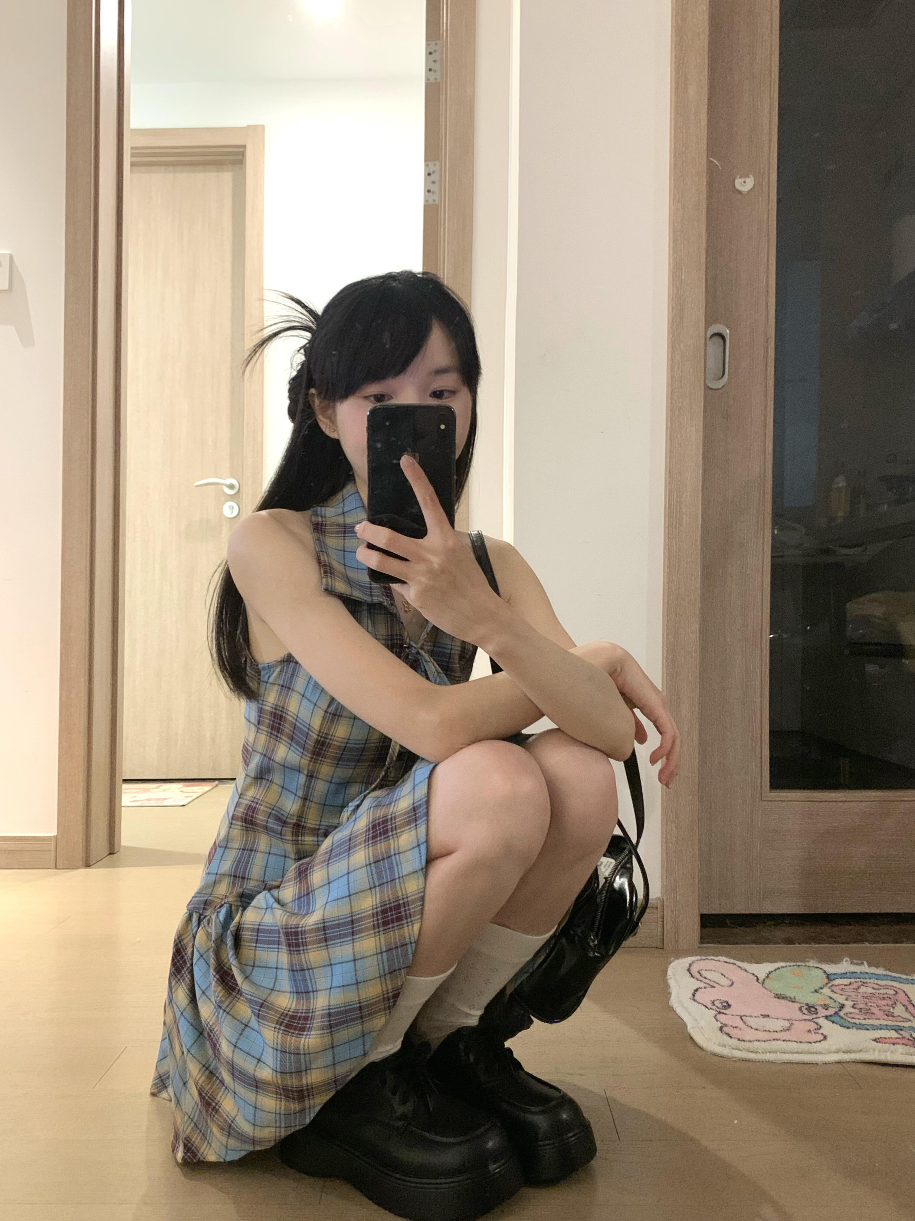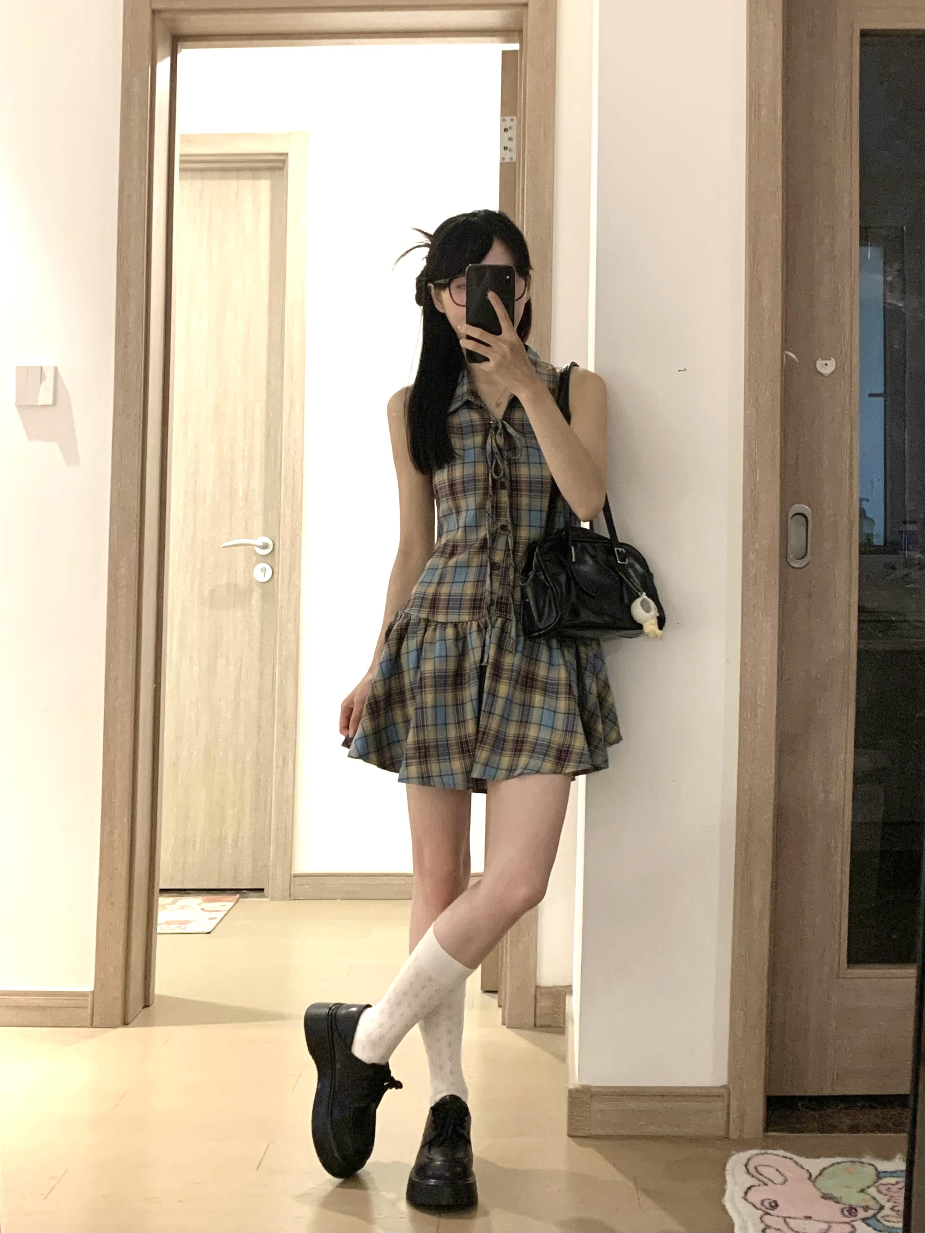 法式格纹polo连衣裙子女夏季学院风穿搭
