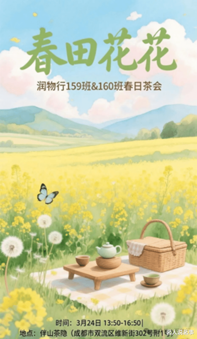 清风徐来,茶烟袅袅。三月二十四日下午,由润物行茶社行茶159&160班主办、“伴山·茶隐”承办的“春田花花”茶会,在双流区黄水镇“伴山·茶隐”圆满举办。主办班如约而至,早期结业的眉山学员闻讯“空投”,计二十余人共赴象征生机与美丽的“春田花花”茶会之旅,同度一段“润物无声·安住当下”的怡然自乐时光。