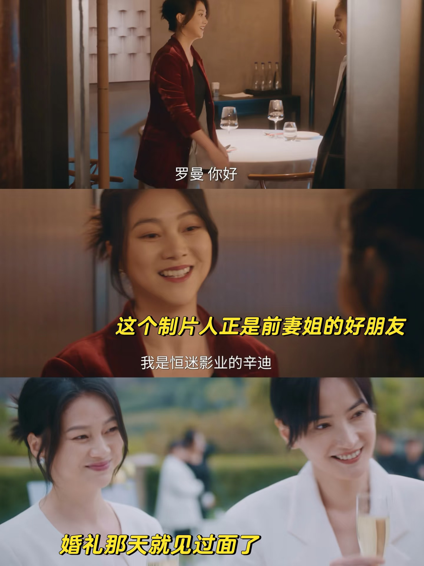 同参加一场婚礼,罗曼见到了周慕孙的前妻,前妻姐很大方的跟罗曼打招呼[暗中观察R]