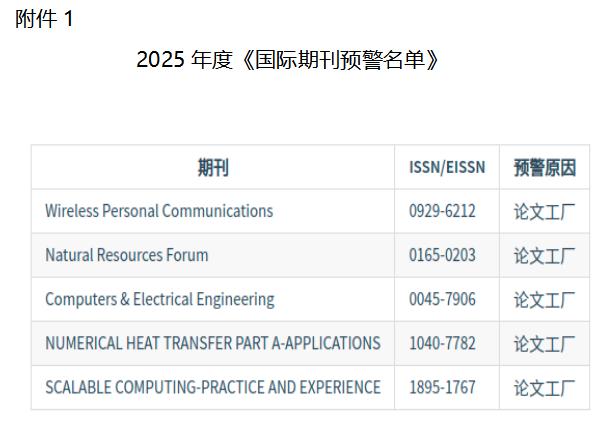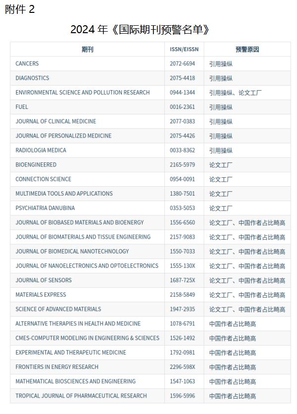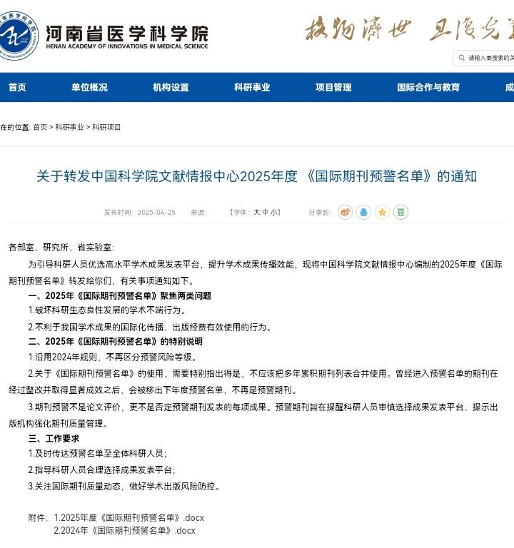 中国科学院文献情报中心2025年度 《国际期刊预警名单》卫生高级职称评审 职称论文发表