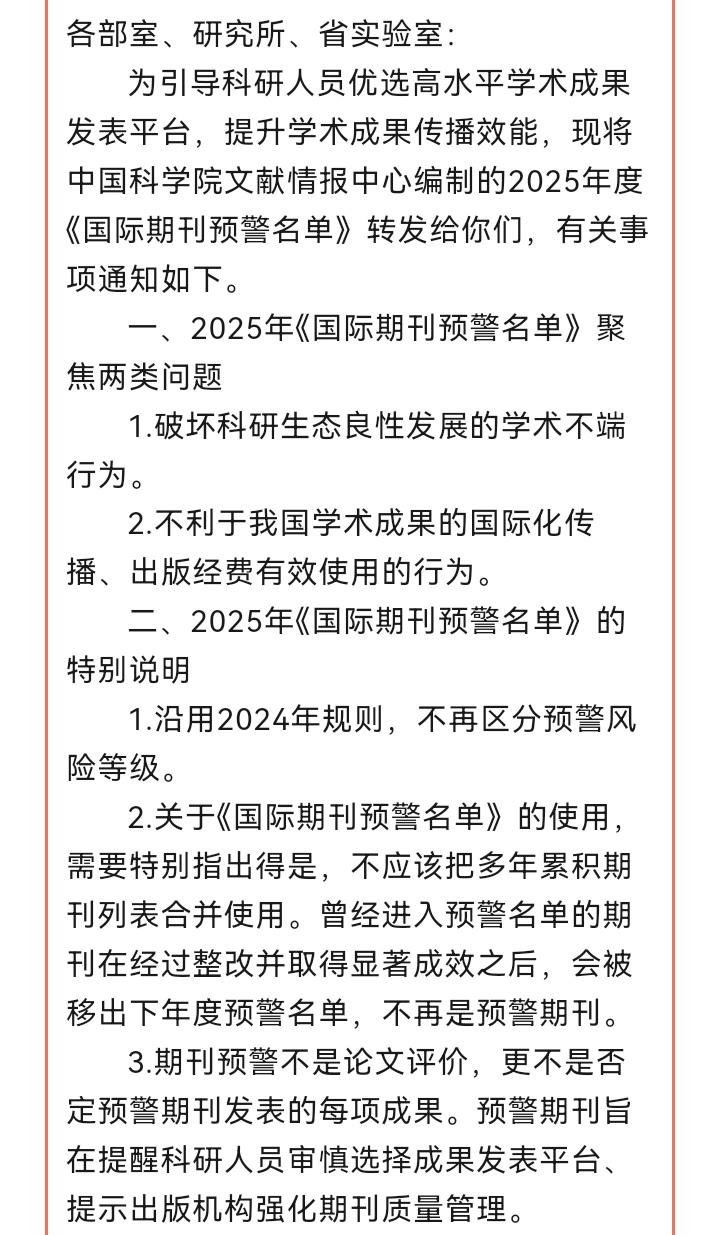 中国科学院文献情报中心2025年度 《国际期刊预警名单》卫生高级职称评审 职称论