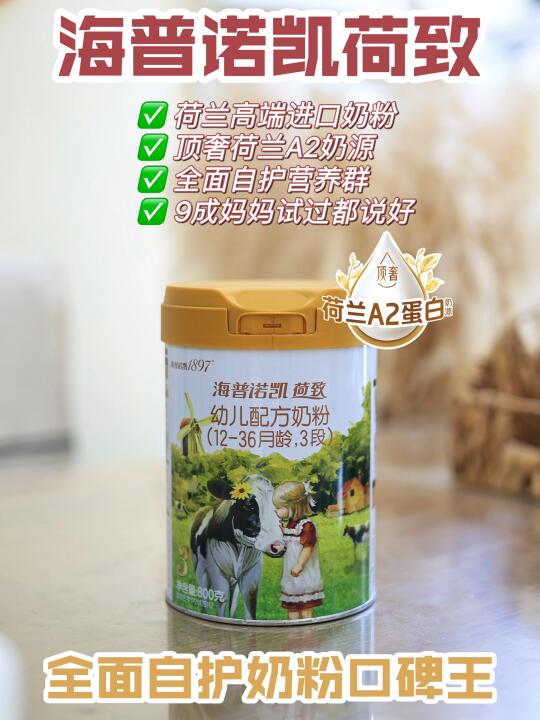 海普诺凯荷致:荷致升级了顶奢荷兰A2奶源,有非常能打的全面自护营养群,新生儿奶粉,宝宝第一口奶,混合喂养都可以选它🥰