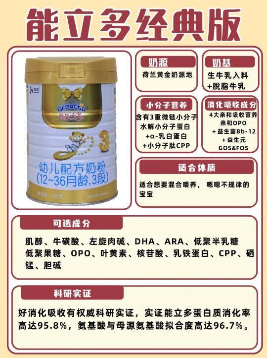 👉能立多经典版:有3重微链小分子(α-乳白蛋白+小分子水解蛋白+小分子活性肽CPP)小分子结构小更温和,能让宝宝少负担,高效吸收营养。🛡️
