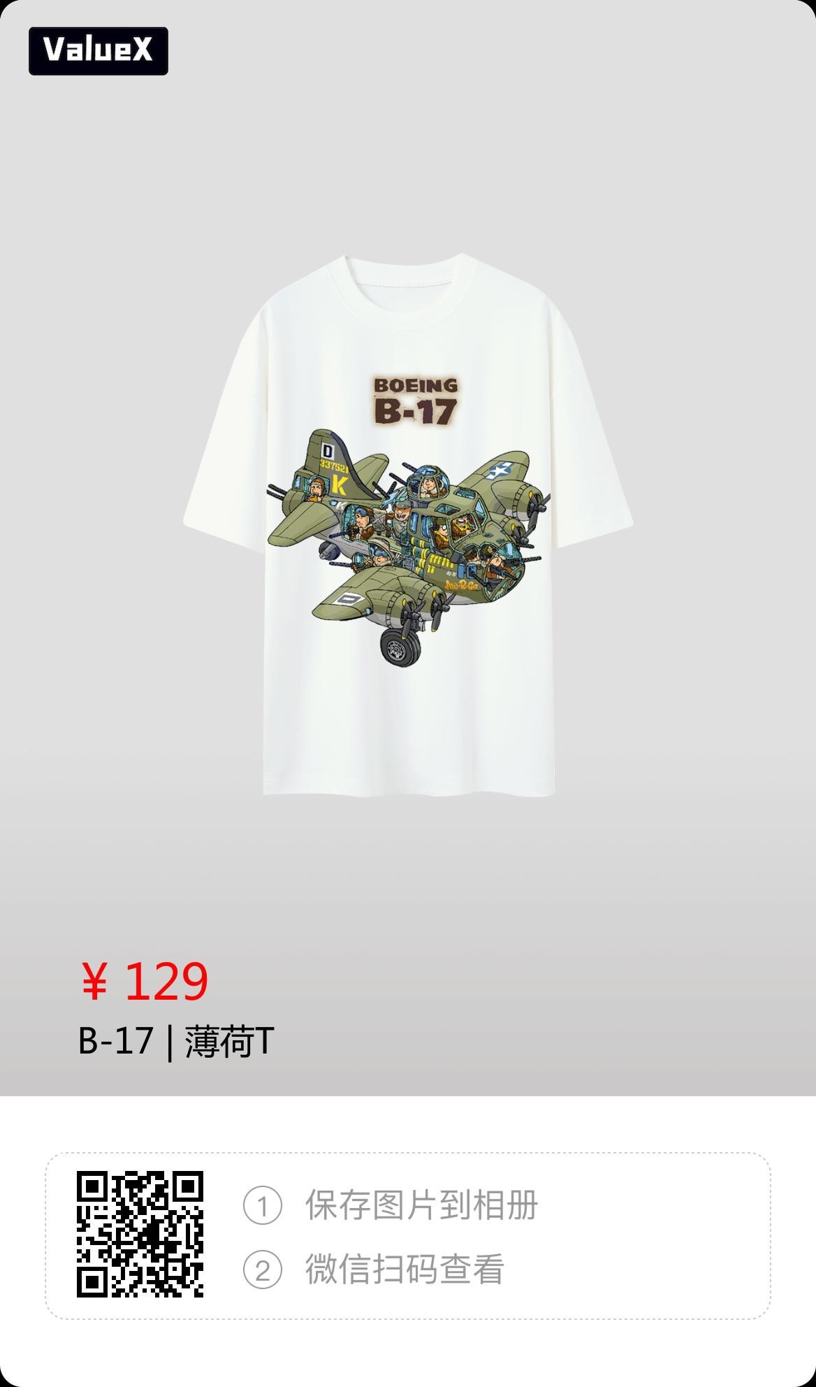 B-17轰炸机卡通画个性T恤!王禹(侏罗纪航空绘画)大师绘制!需要的可以扫码下单