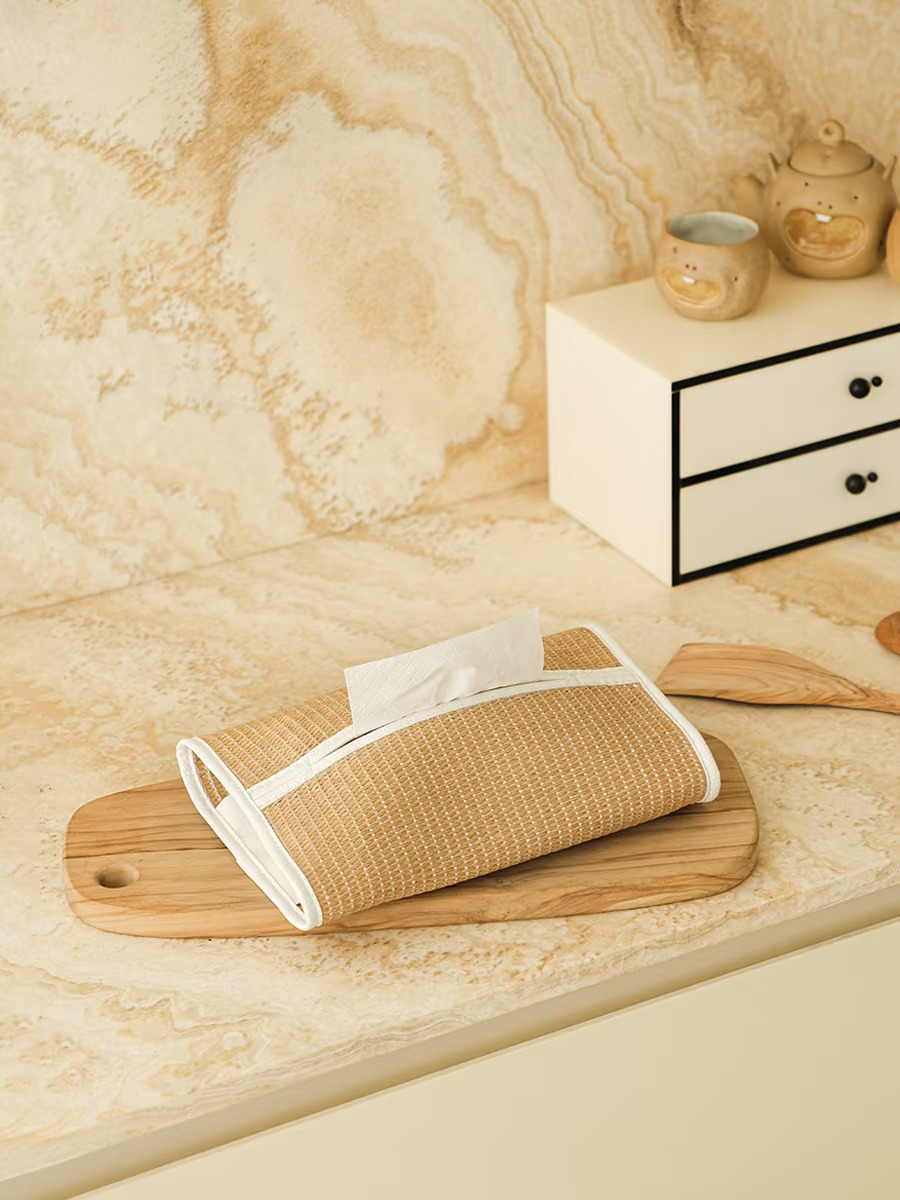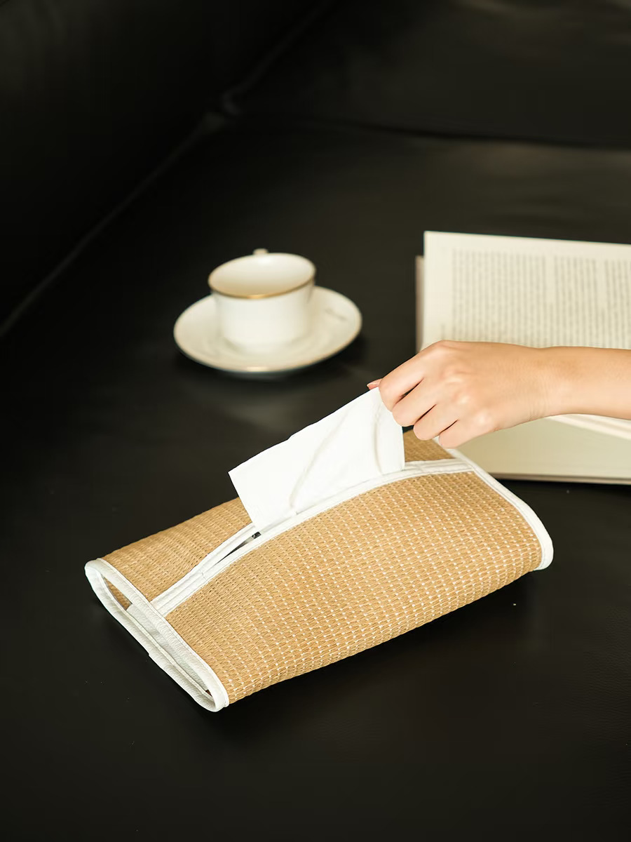 抽纸口经过精心设计,开合顺滑不卡纸,取用纸巾超方便。皮革包裹的边角,不仅提升了整体质感,还能有效保护草编部分,耐用性直接拉满!内部空间宽敞,适配各种尺寸的抽纸,细节控狂喜!