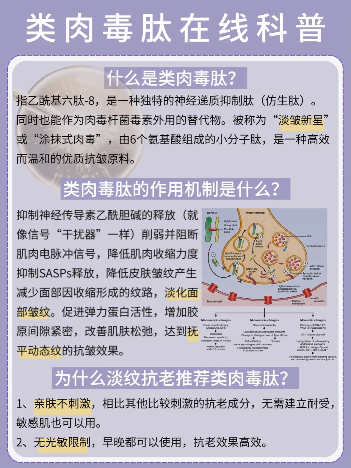 首先就是专研类肉毒肽,可以称得上是纹路杀手,直接从根源阻断刺激纹路生成的神经信号!不仅能抚平各种干纹细纹,甚至还能填平顽固的法令纹,就连想要冒头的潜在纹都能ble kill,把那些显老的纹路直接给我一窝端了,面部平整度上去后,肌肤自然而然就显年轻了。