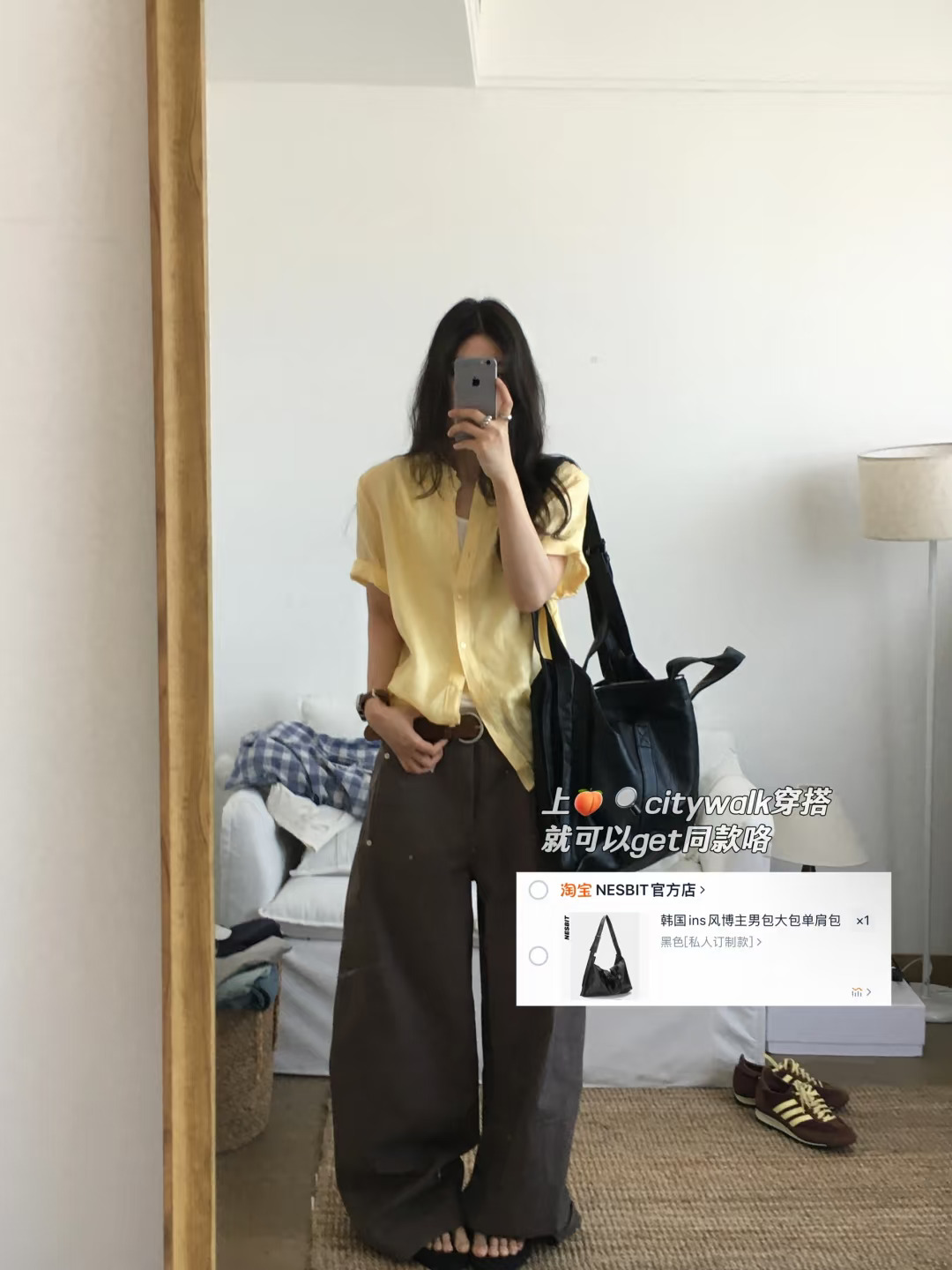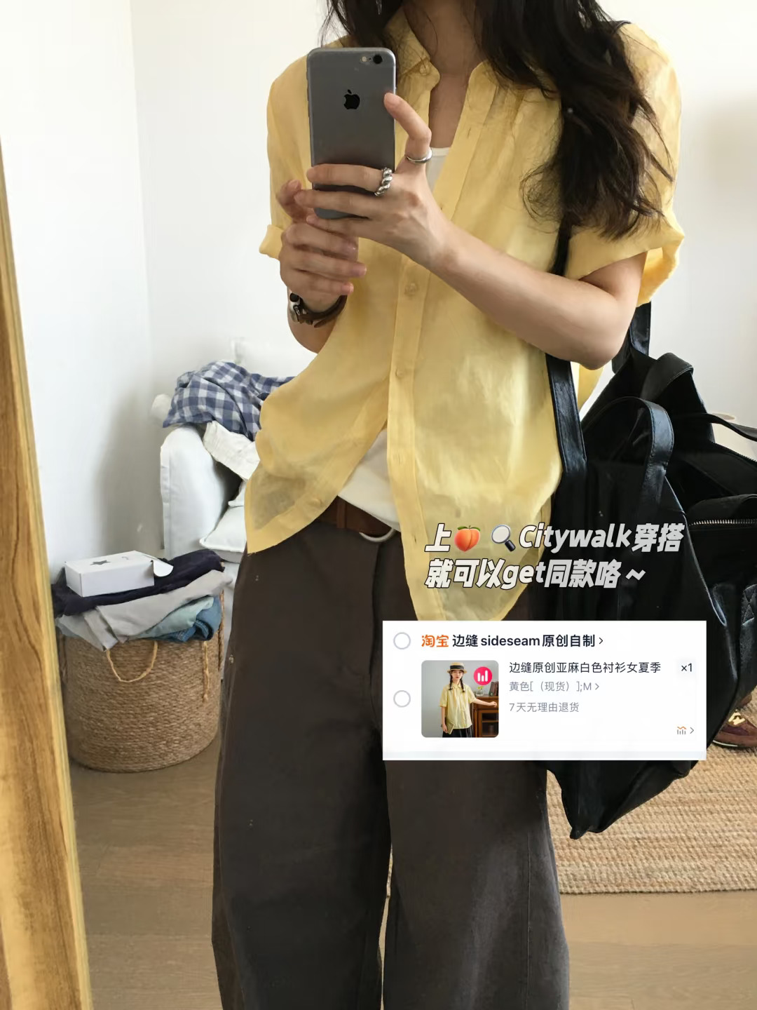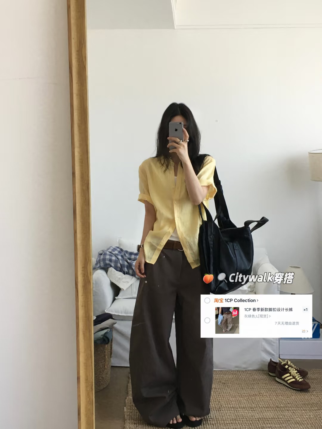 夏天也很爱穿的衬衫加长裤,黄棕配色穿不腻,通勤不出错的一套~ citywalk穿搭