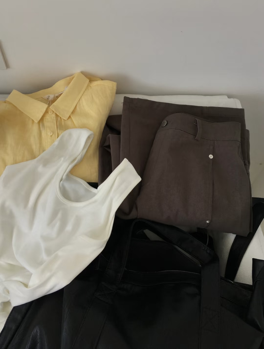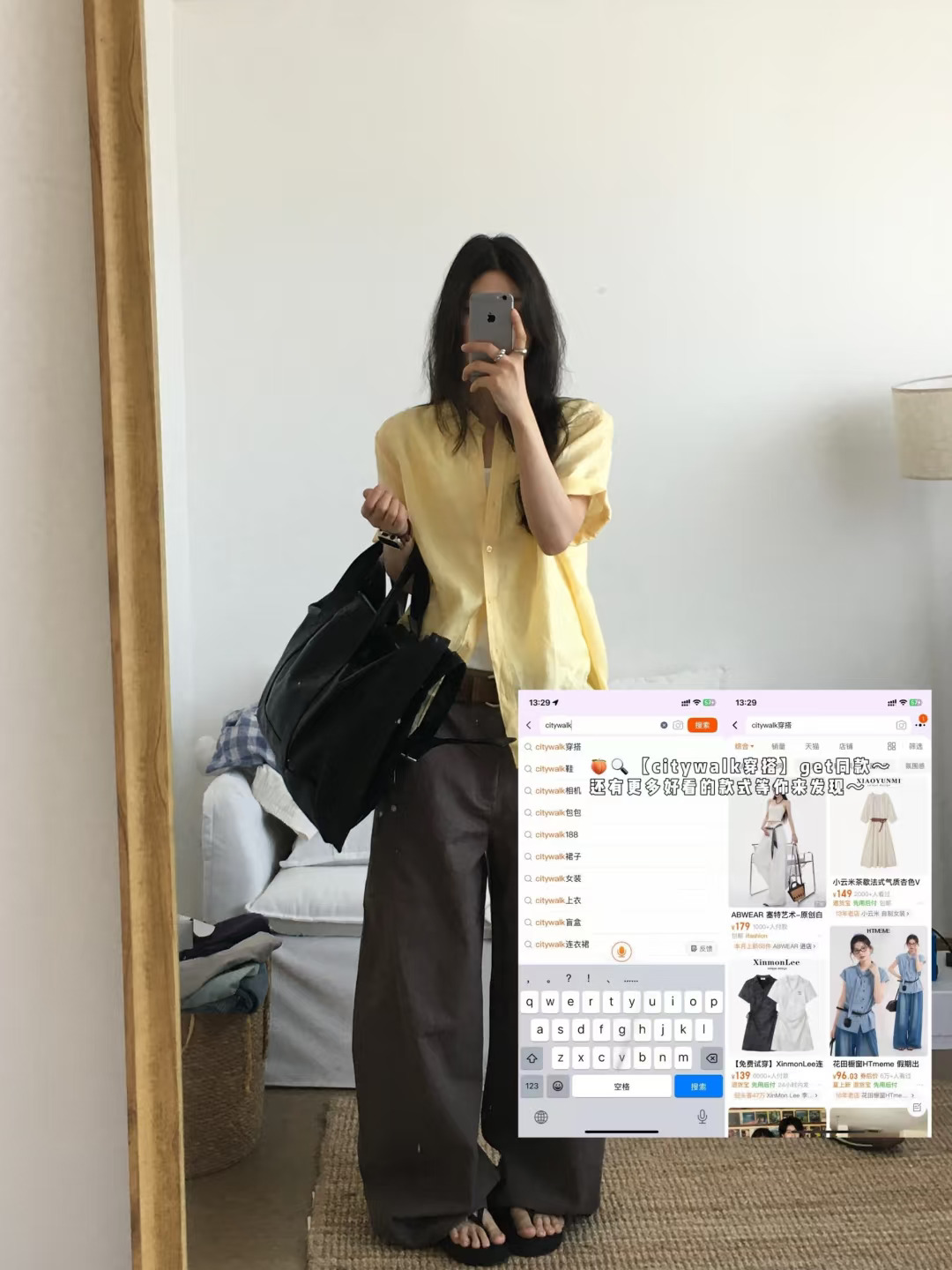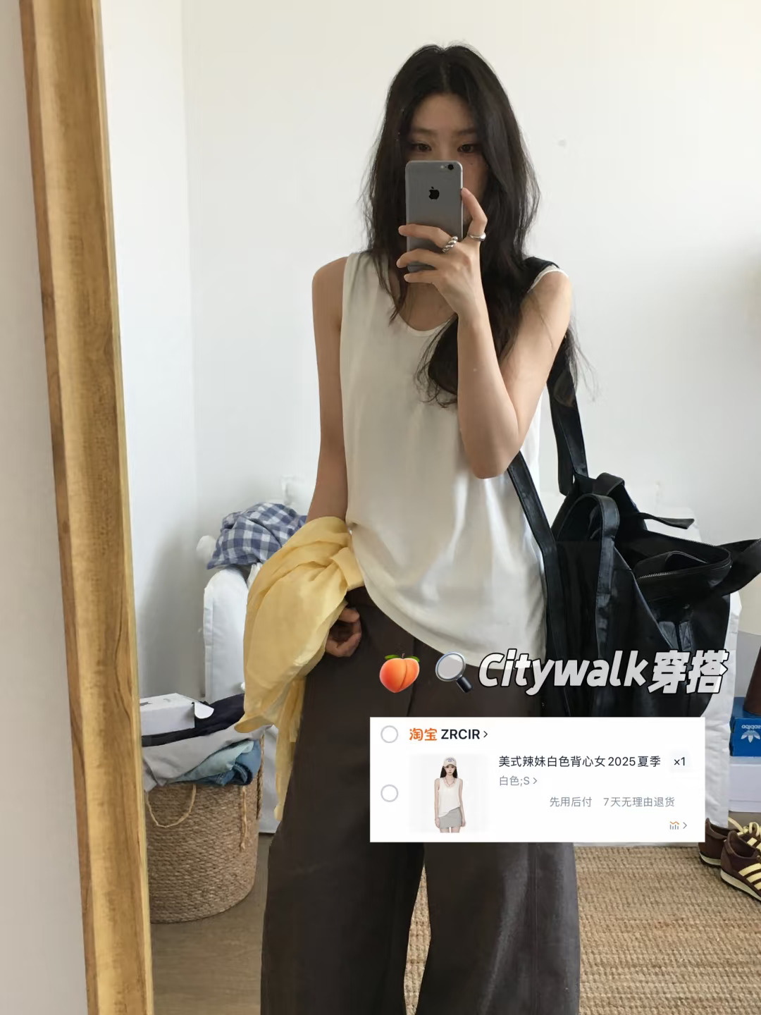 夏天也很爱穿的衬衫加长裤,黄棕配色穿不腻,通勤不出错的一套~ citywalk穿搭