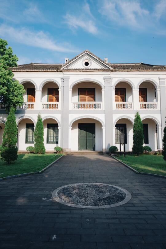 整个教堂坐落于金堂湖畔,穿过前花园上坡后就能看到一个宏阔的五开间主门楼,进去就是主教堂→左右钟楼→神父楼→玫瑰园→修道院。教堂外立面形式是中国传统的牌楼,底部有罗马式的拱券柱廊廊道;两侧的钟楼是具有哥特式元素的四方体建筑。我特别喜欢神父楼旁边的那棵大樟树,应该是教堂落成时便种下的。整个教堂既有川派特色,又糅合了欧式风格。