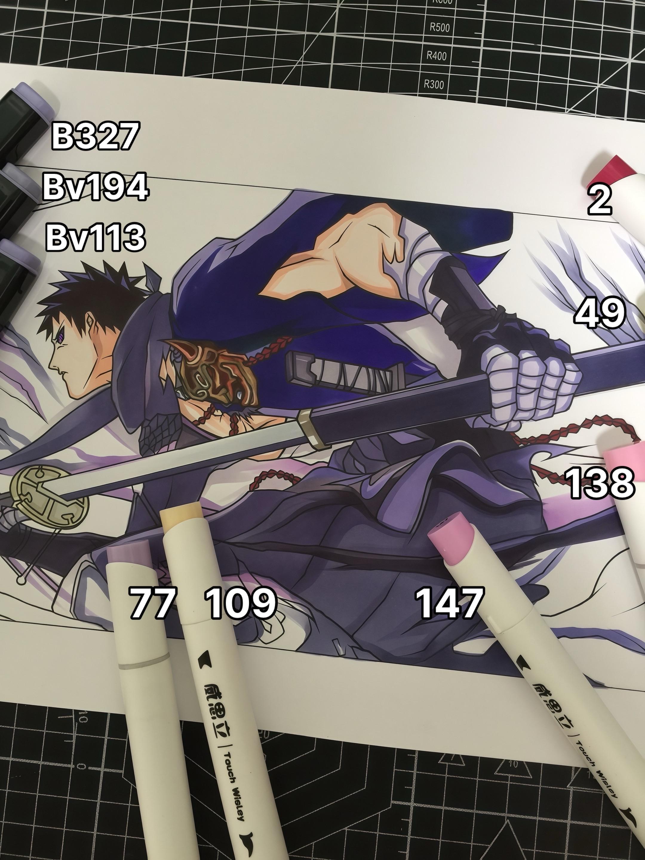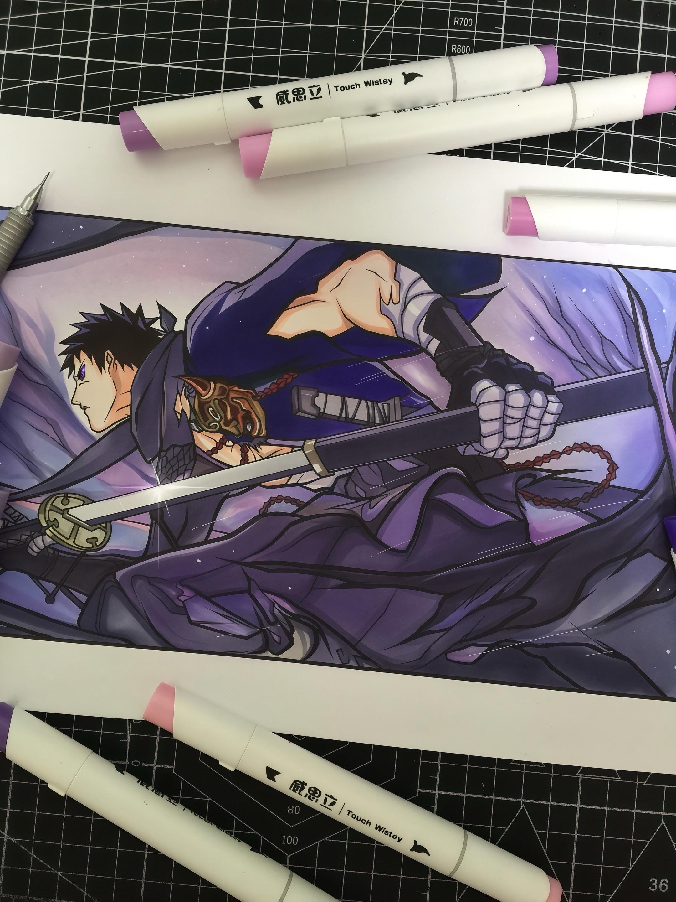 就用手中这把刃 斩尽一切吧! 漂泊带土 手绘 绘画过程图 火影忍者手游 马克笔:威思立一代