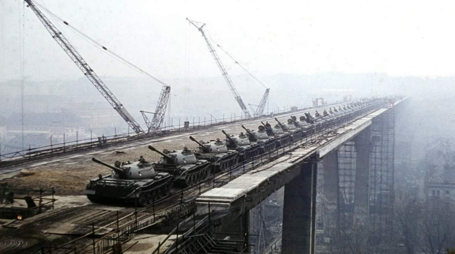 1970年,捷克斯洛伐克一座崭新的大桥前,120辆T-55坦克排成纵队,轰鸣着驶上桥面。钢铁履带碾过沥青路面,场面壮观得像战争大片。