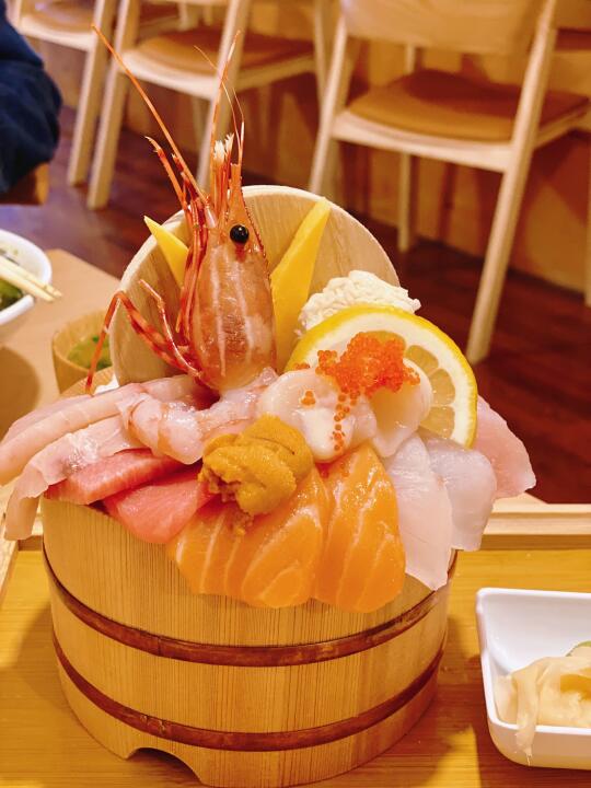 这个很火,谁能拒绝新鲜的Chirashi呀,摆盘也很漂亮,下面是香甜的米饭,还配一碗味增汤,太满足啦🍣