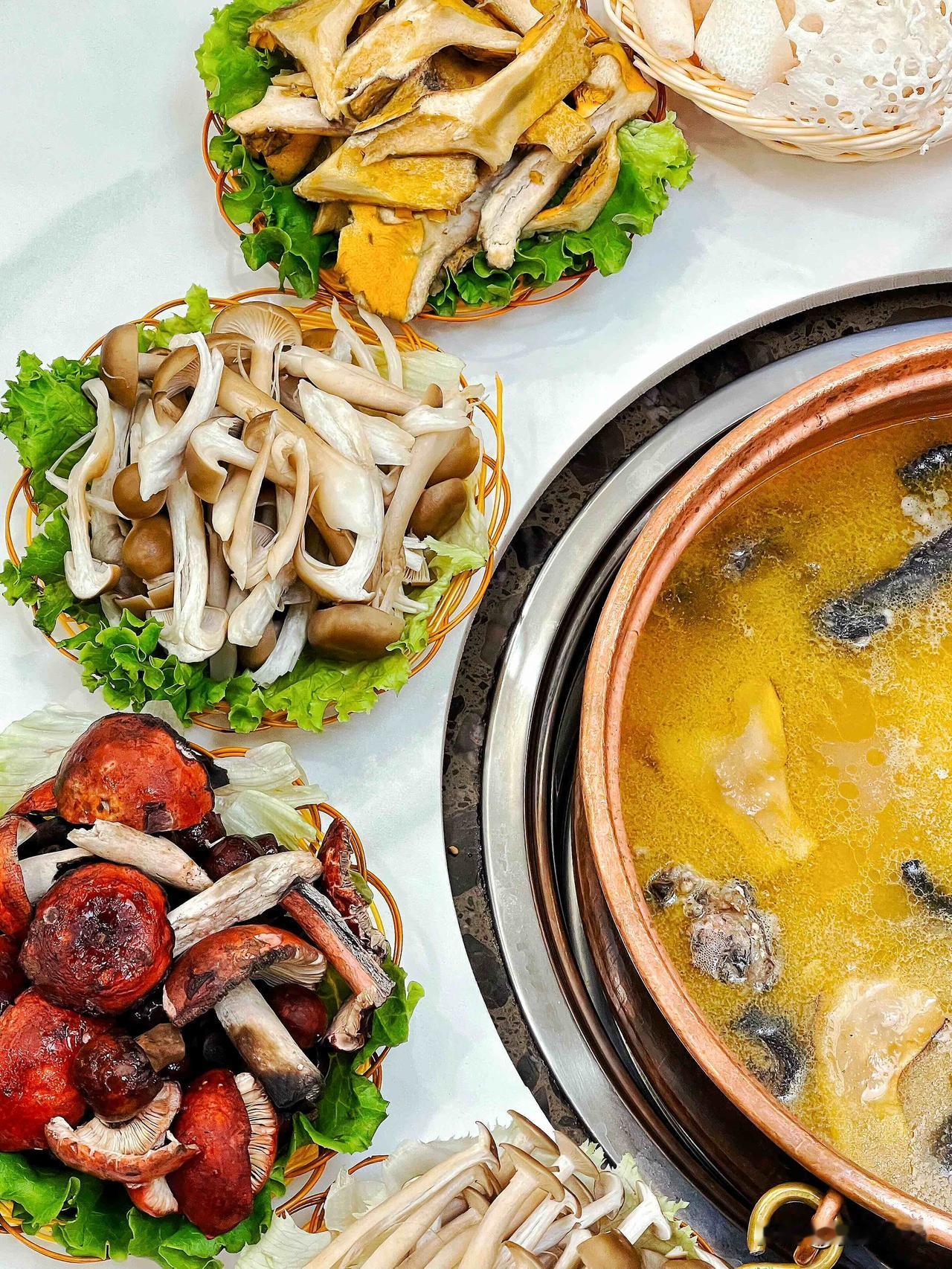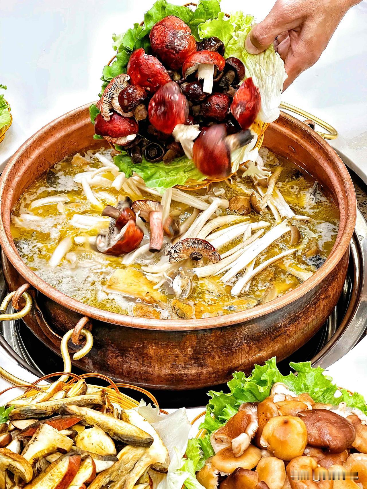 见手青的魔幻变色术、鸡枞的脆嫩清甜、牛肝菌的肥美丰腴…十几种野生菌在鸡汤里翻腾起舞!计时25分钟仪式感拉满!期间你只能望锅兴叹,因为在时间未到之前你是绝对不可能拿到筷子的!